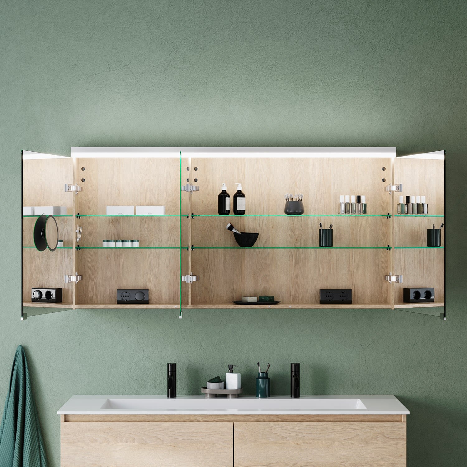 burgbad Lin20 Spiegelschrank mit LED-Beleuchtung, 140 cm, 3 Spiegeltüren, rechts
