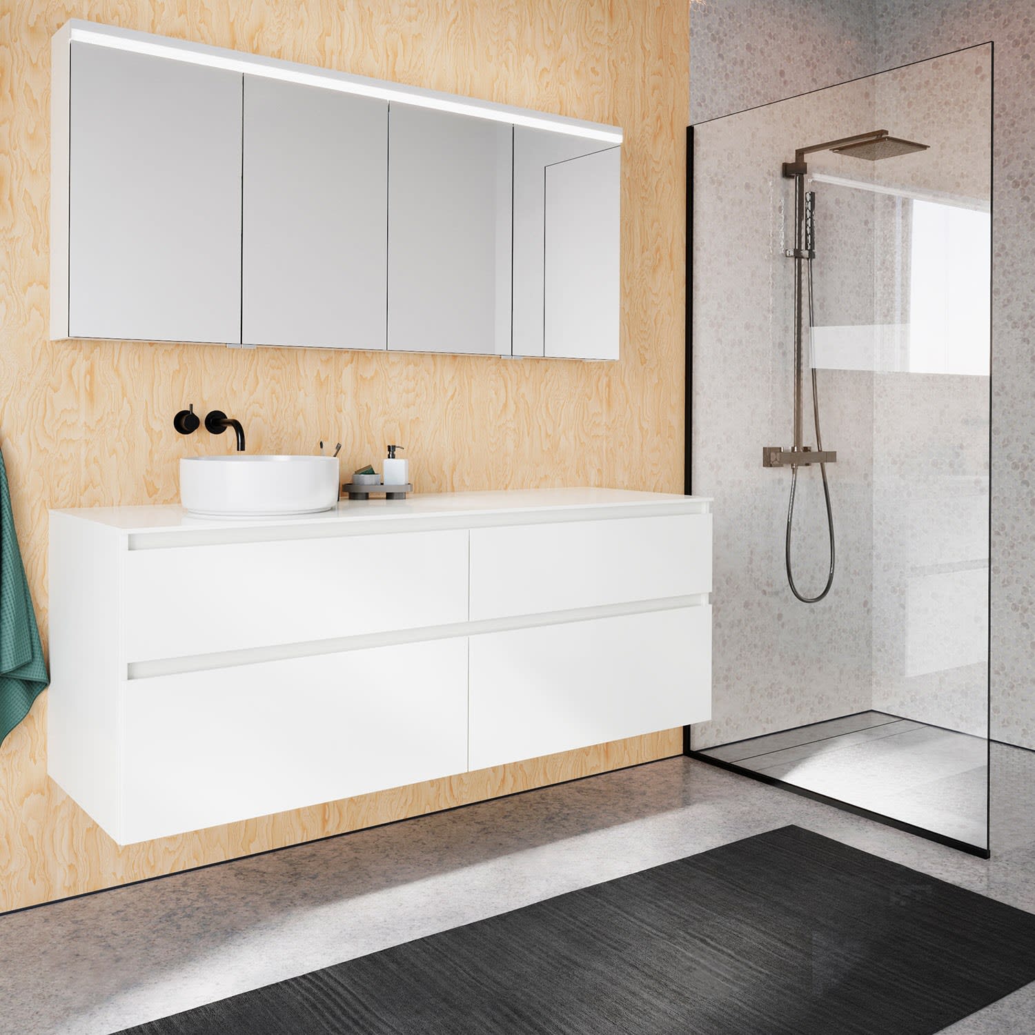 burgbad Lin20 Spiegelschrank mit LED-Beleuchtung, 160 cm, 4 Spiegeltüren