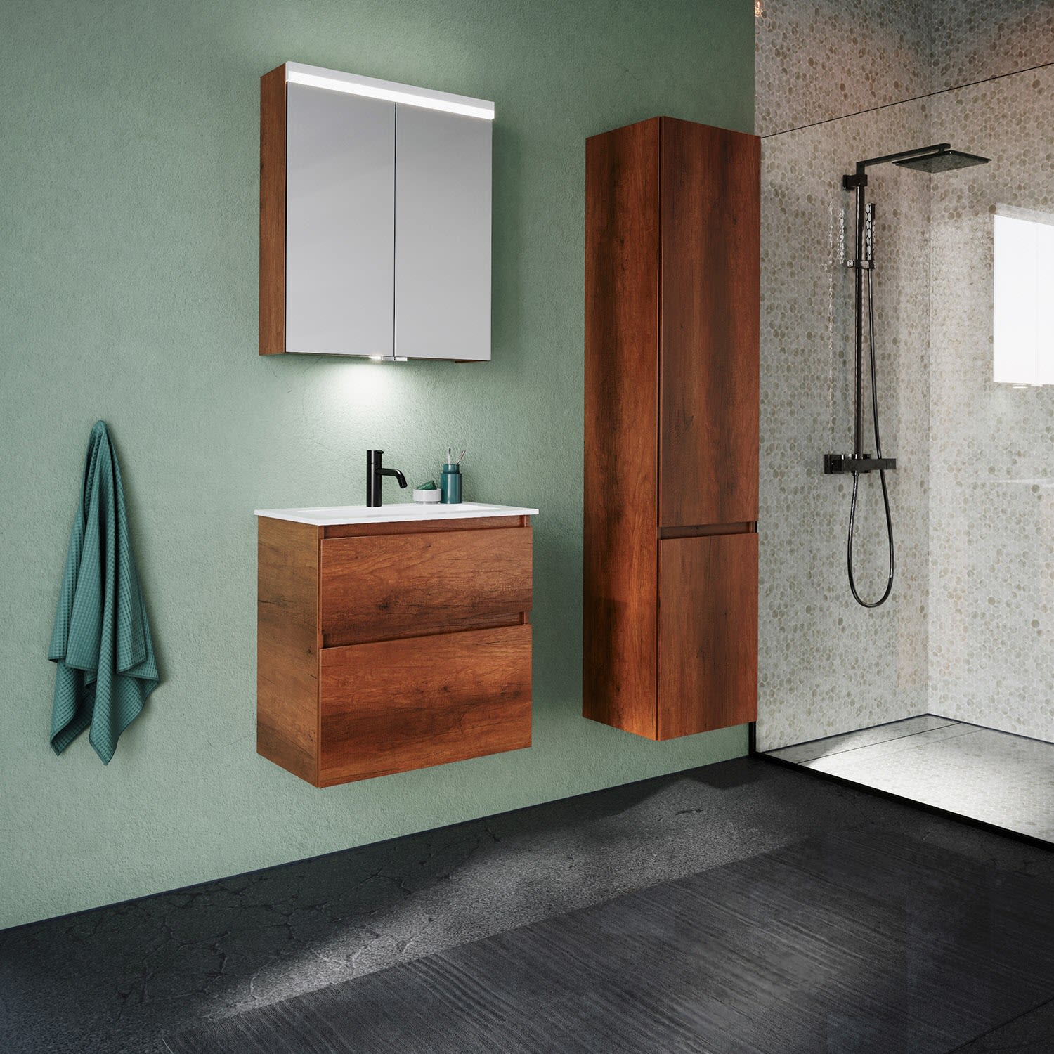burgbad Lin20 Spiegelschrank mit LED-Beleuchtung, 60 cm, 2 Spiegeltüren, mit Waschtischbeleuchtung