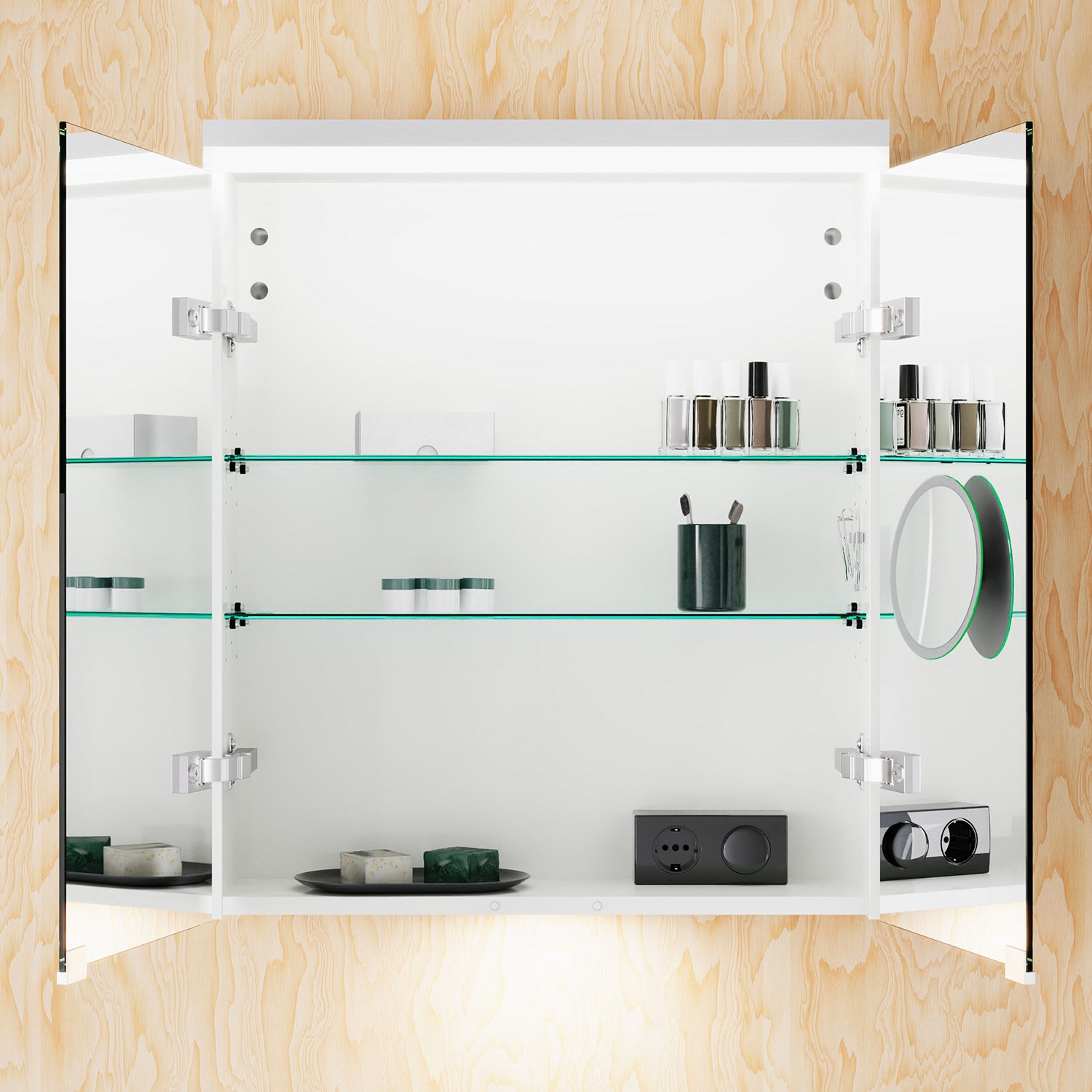 burgbad Lin20 Spiegelschrank mit LED-Beleuchtung, 60 cm, 2 Spiegeltüren, mit Waschtischbeleuchtung