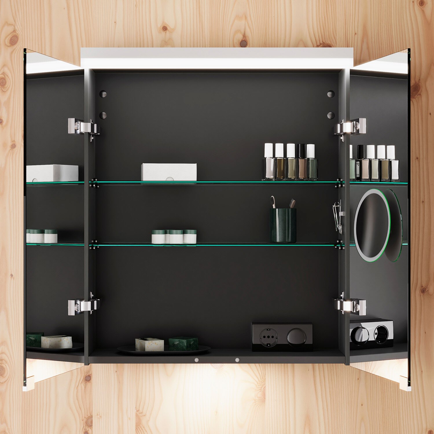 burgbad Lin20 Spiegelschrank mit LED-Beleuchtung, 60 cm, 2 Spiegeltüren, mit Waschtischbeleuchtung