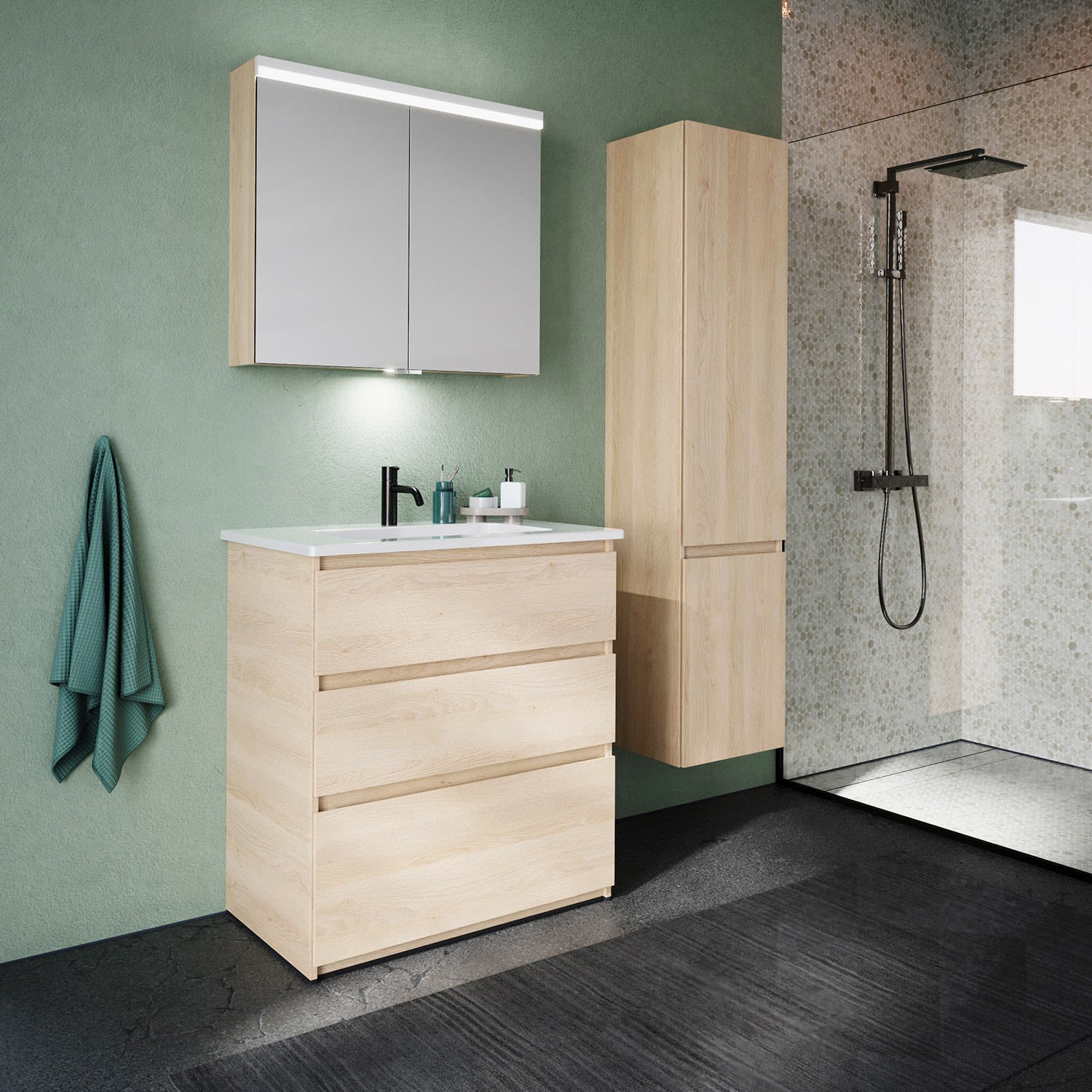 burgbad Lin20 Spiegelschrank mit LED-Beleuchtung, 80 cm, 2 Spiegeltüren, mit Waschtischbeleuchtung