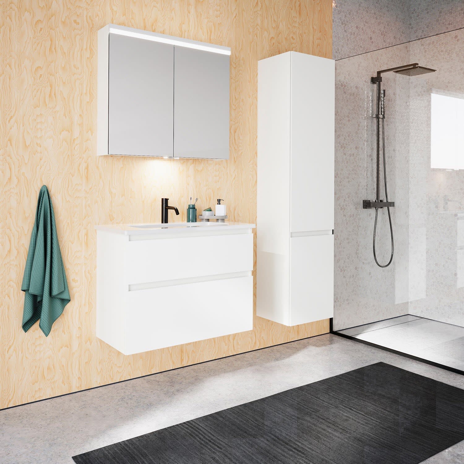burgbad Lin20 Spiegelschrank mit LED-Beleuchtung, 80 cm, 2 Spiegeltüren, mit Waschtischbeleuchtung