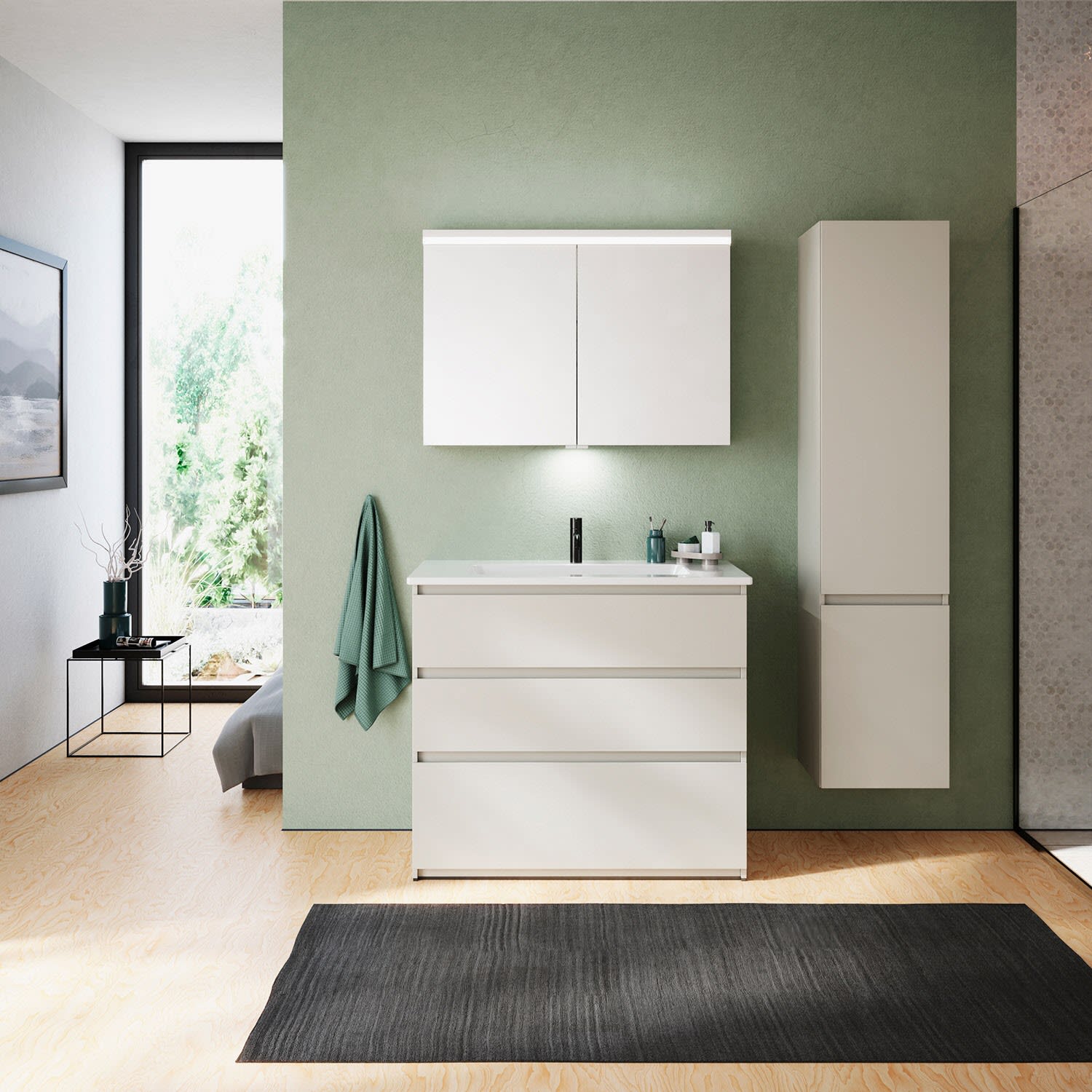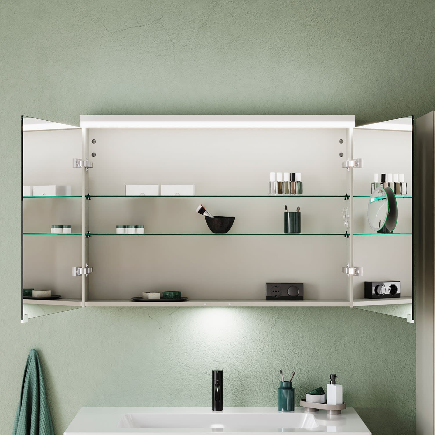 burgbad Lin20 Spiegelschrank mit LED-Beleuchtung, 100 cm, 2 Spiegeltüren, mit Waschtischbeleuchtung