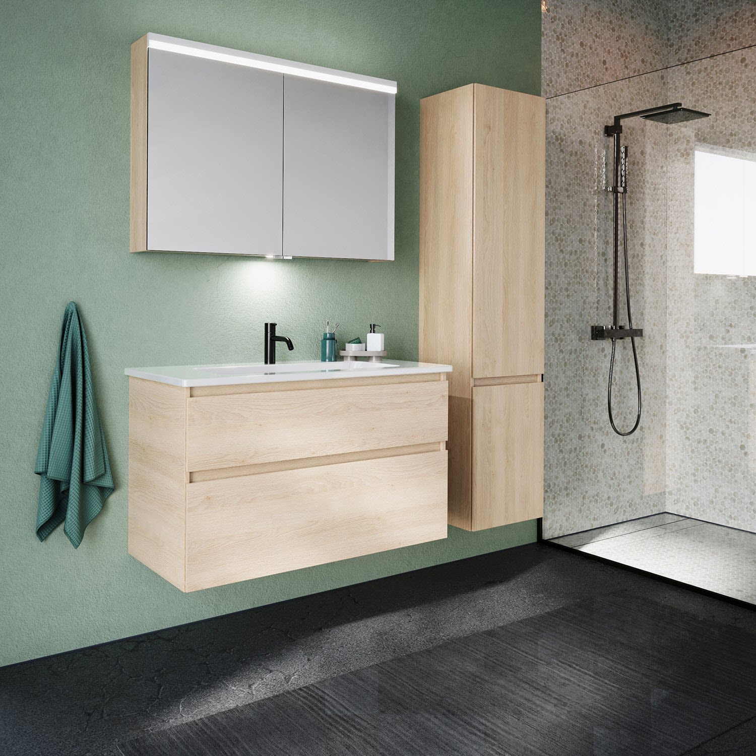 burgbad Lin20 Spiegelschrank mit LED-Beleuchtung, 100 cm, 2 Spiegeltüren, mit Waschtischbeleuchtung