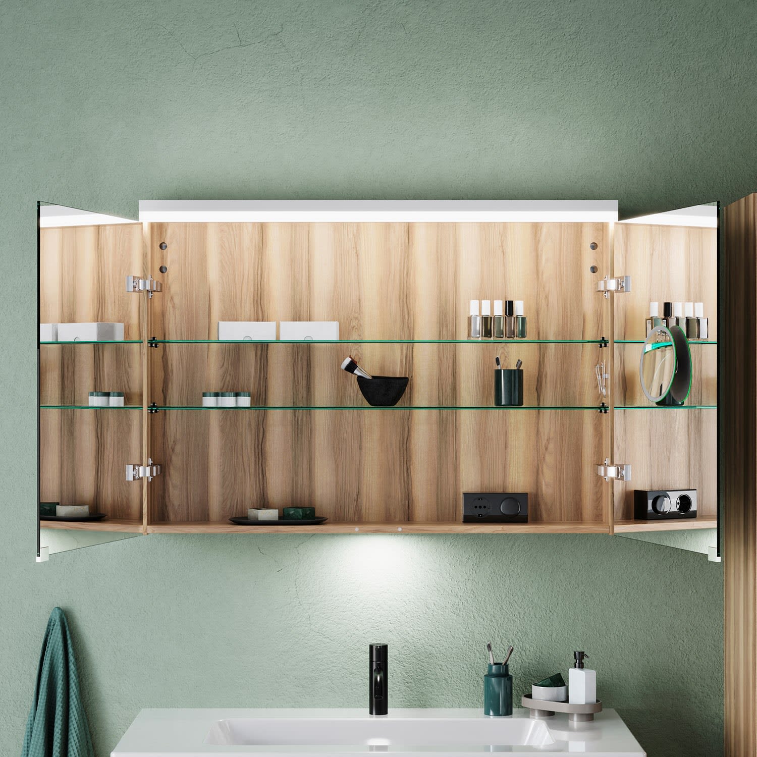 burgbad Lin20 Spiegelschrank mit LED-Beleuchtung, 100 cm, 2 Spiegeltüren, mit Waschtischbeleuchtung