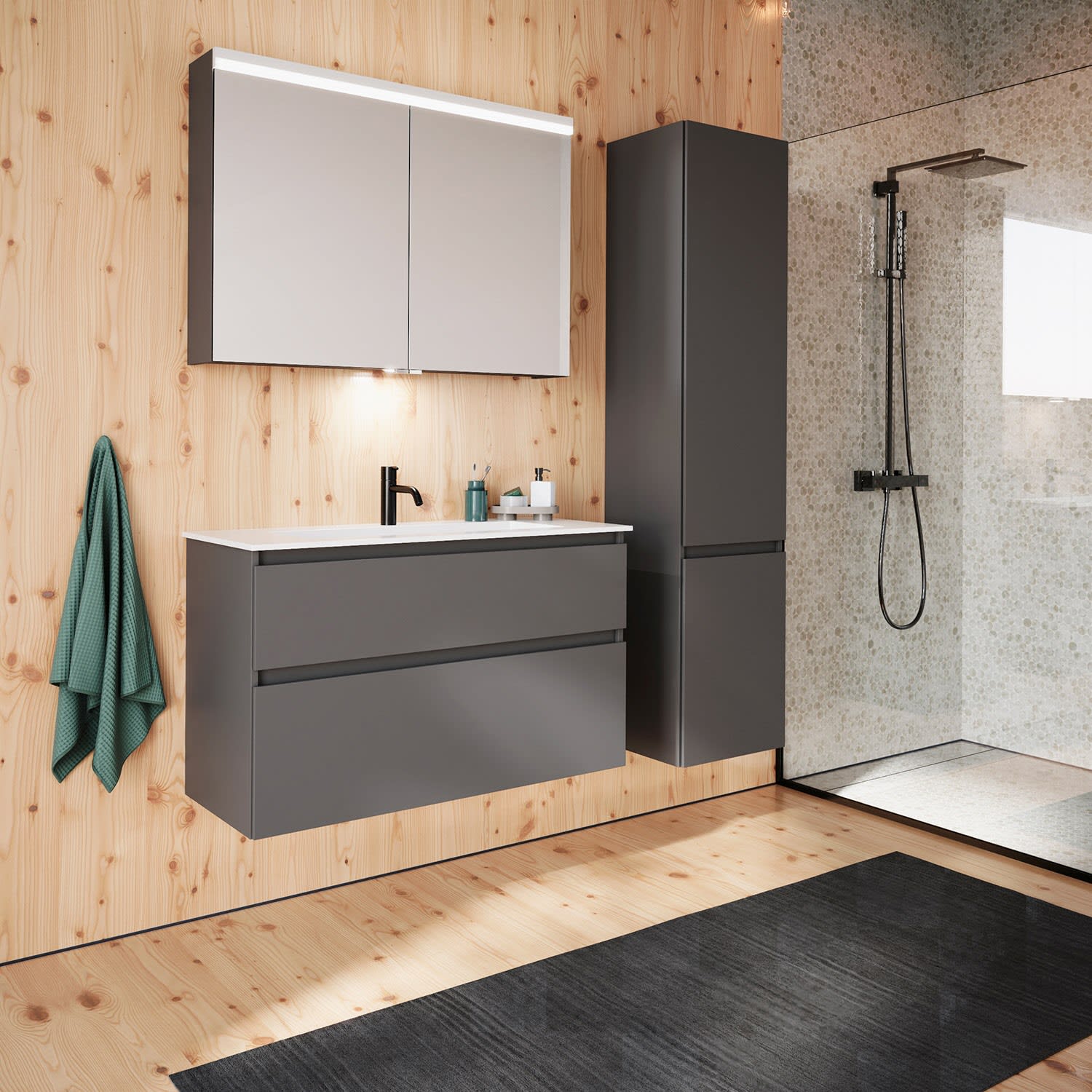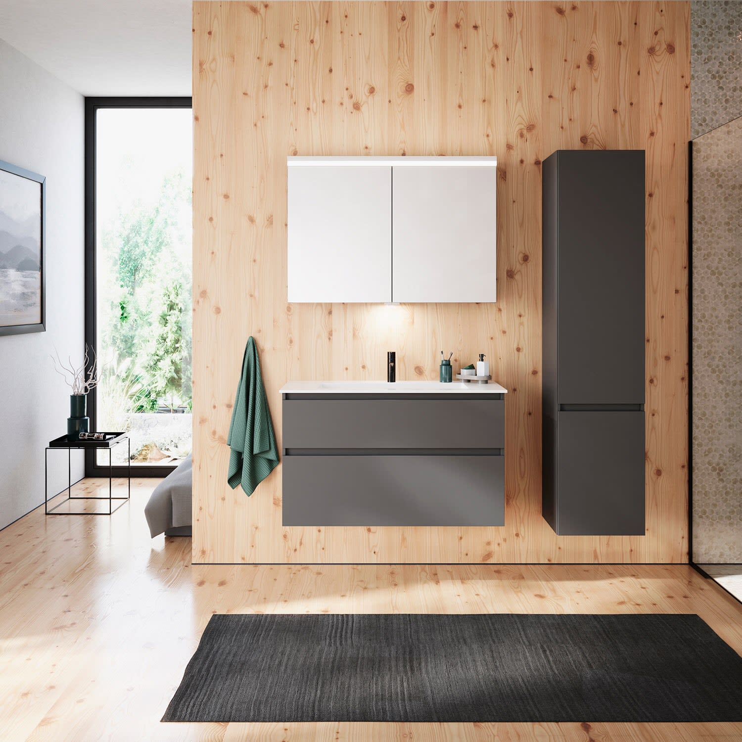 burgbad Lin20 Spiegelschrank mit LED-Beleuchtung, 100 cm, 2 Spiegeltüren, mit Waschtischbeleuchtung