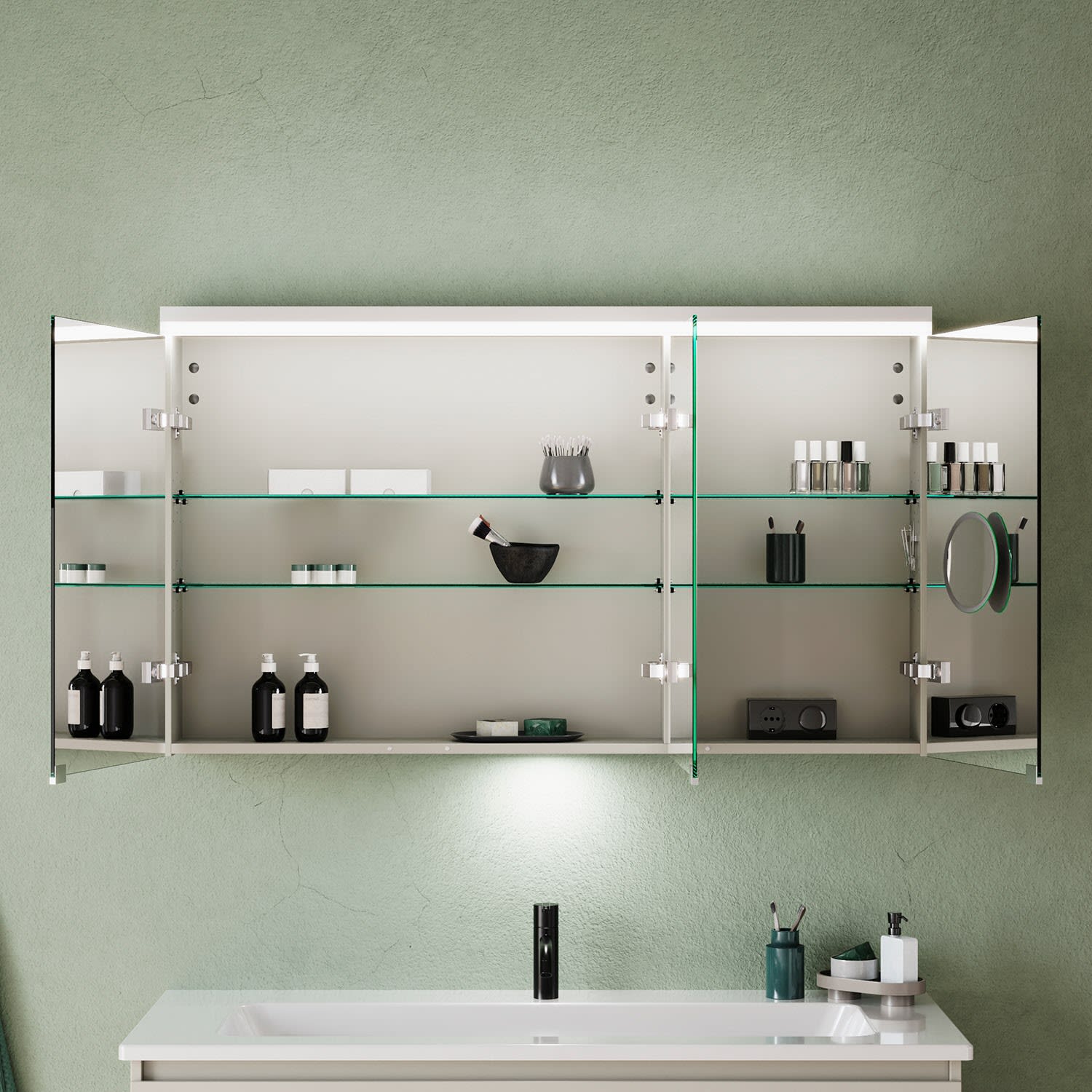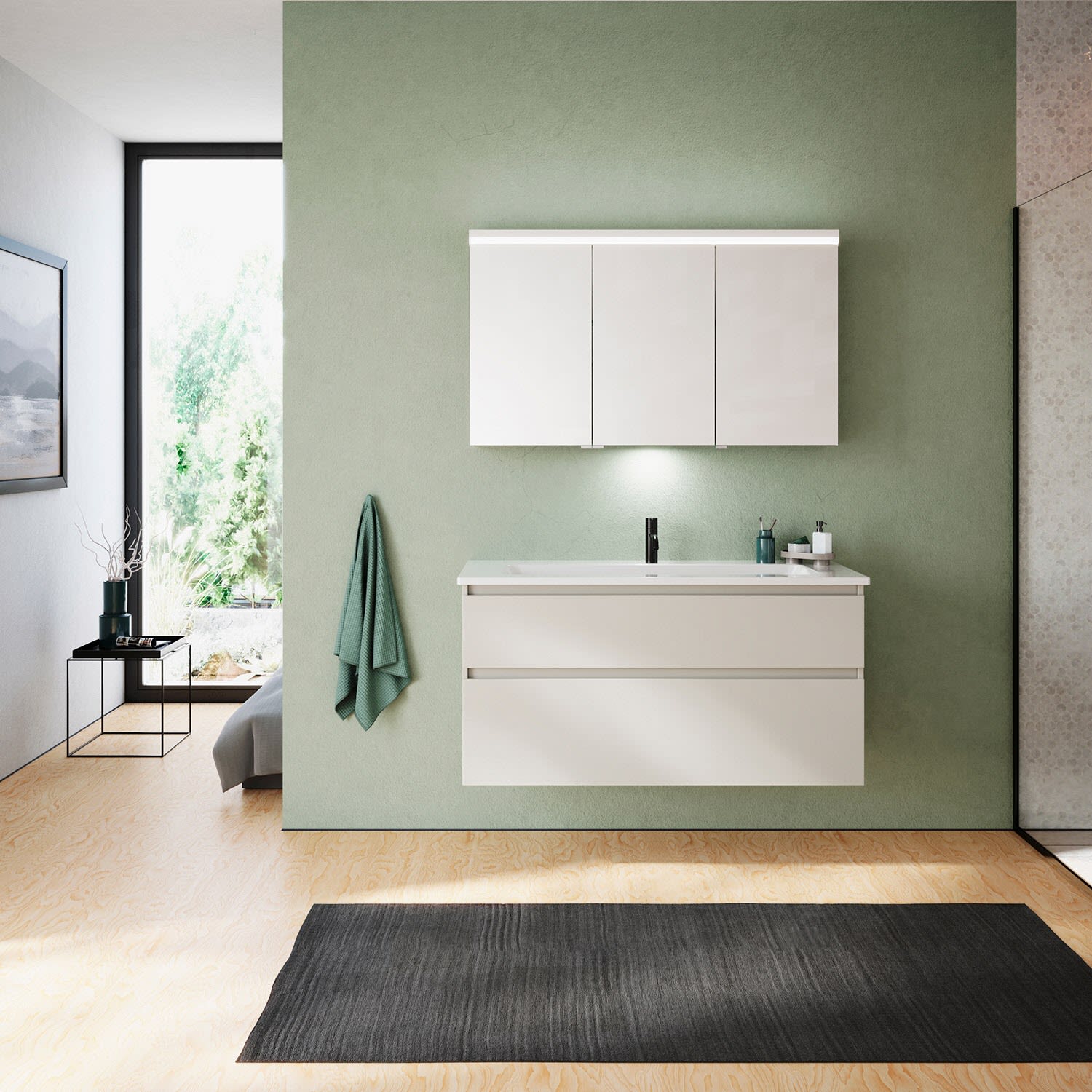 burgbad Lin20 Spiegelschrank mit LED-Beleuchtung, 120 cm, 3 Spiegeltüren, links, mit Waschtischbeleuchtung