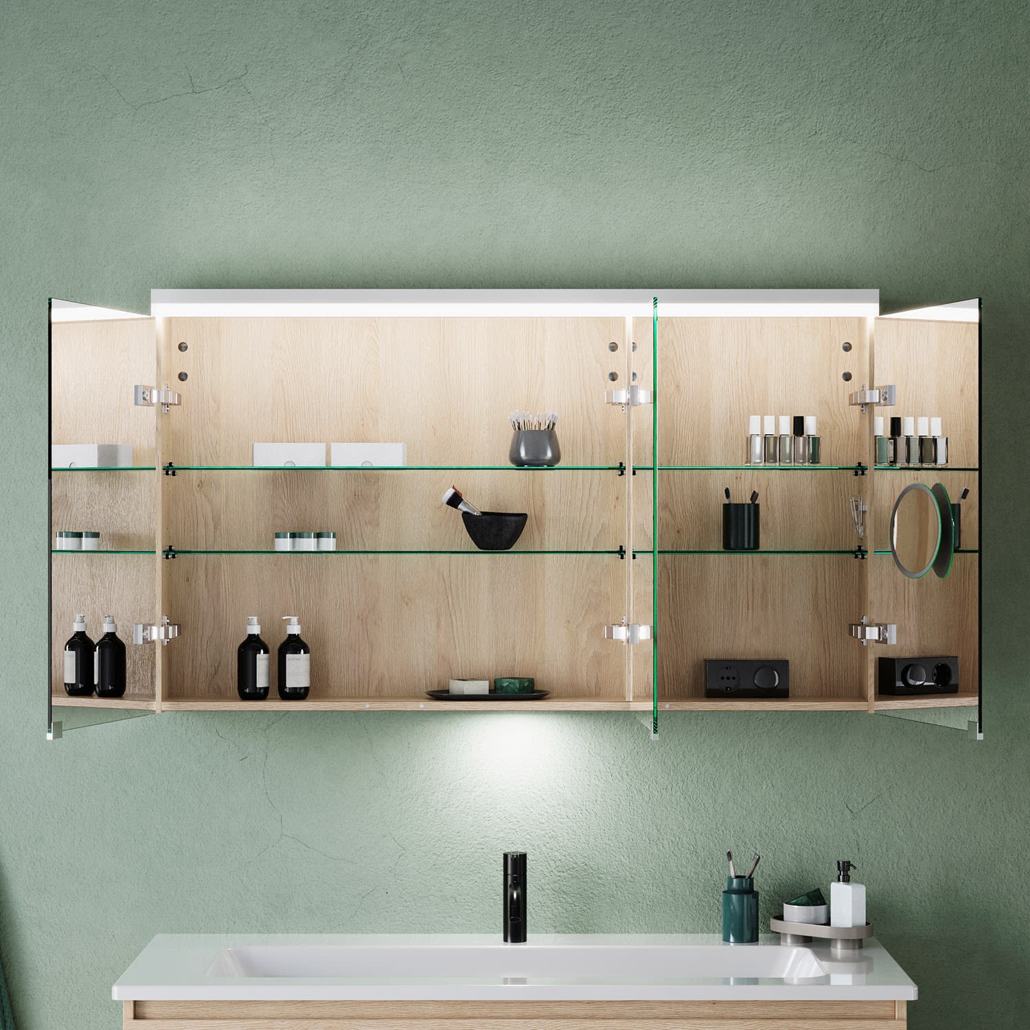 burgbad Lin20 Spiegelschrank mit LED-Beleuchtung, 120 cm, 3 Spiegeltüren, links, mit Waschtischbeleuchtung