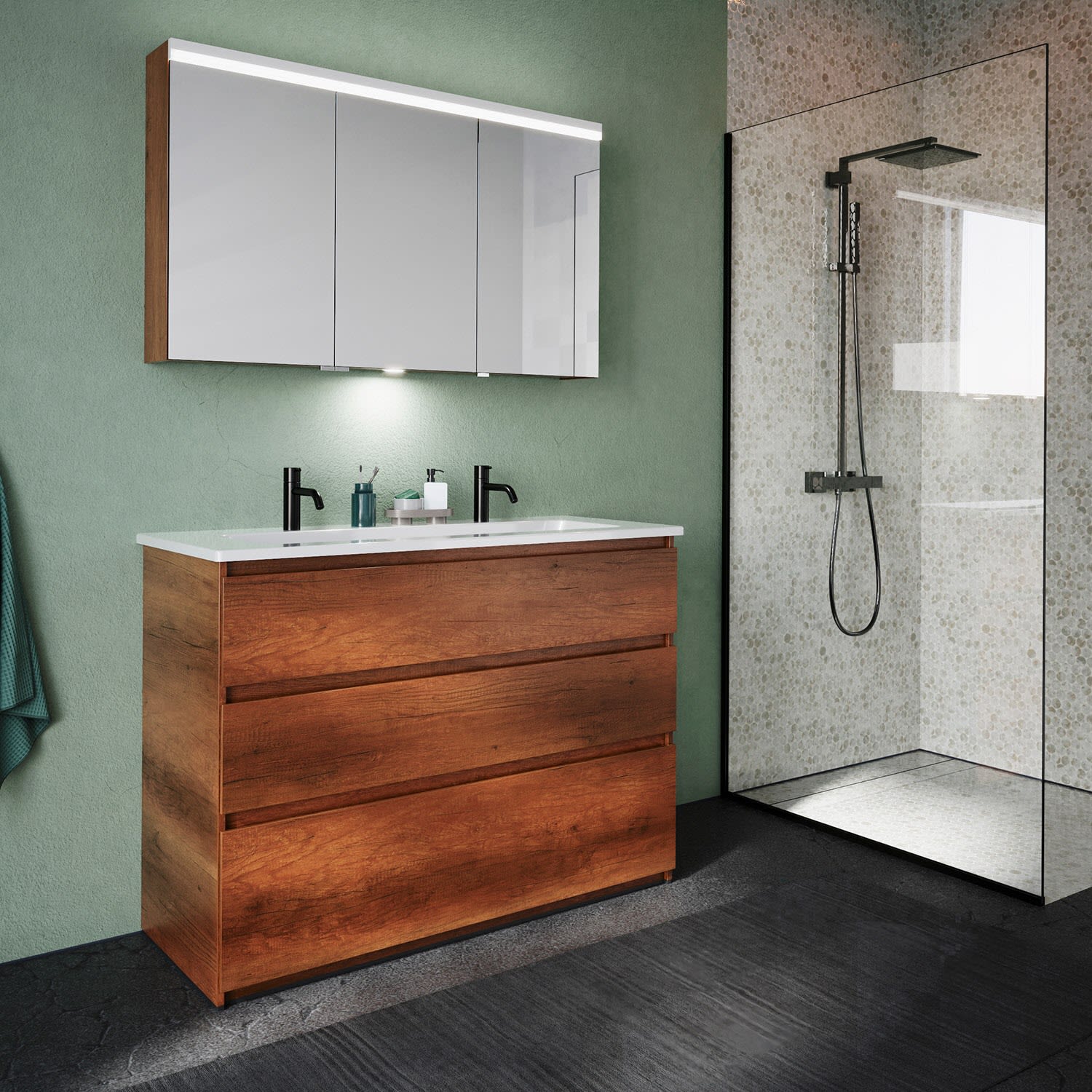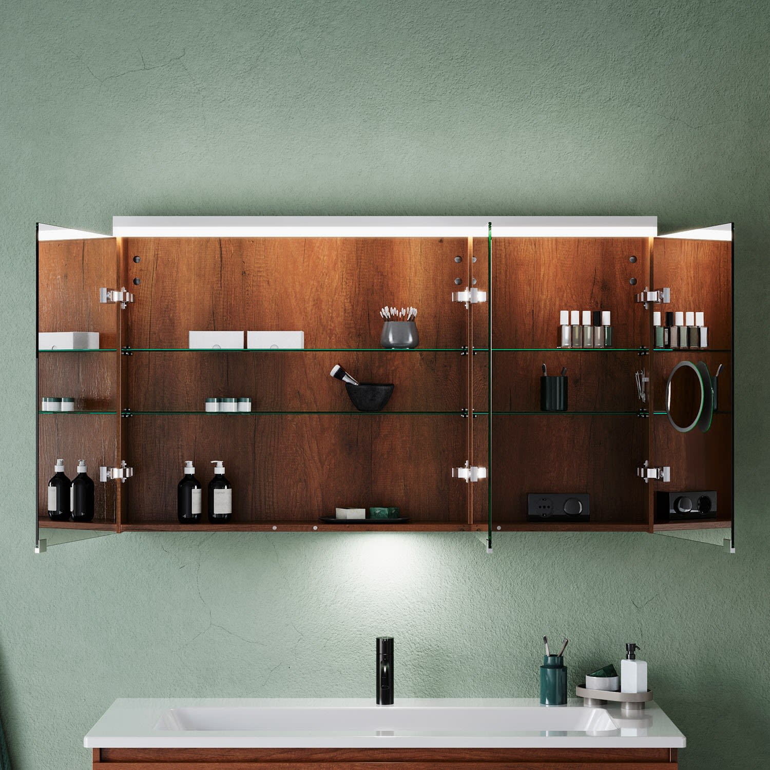 burgbad Lin20 Spiegelschrank mit LED-Beleuchtung, 120 cm, 3 Spiegeltüren, links, mit Waschtischbeleuchtung