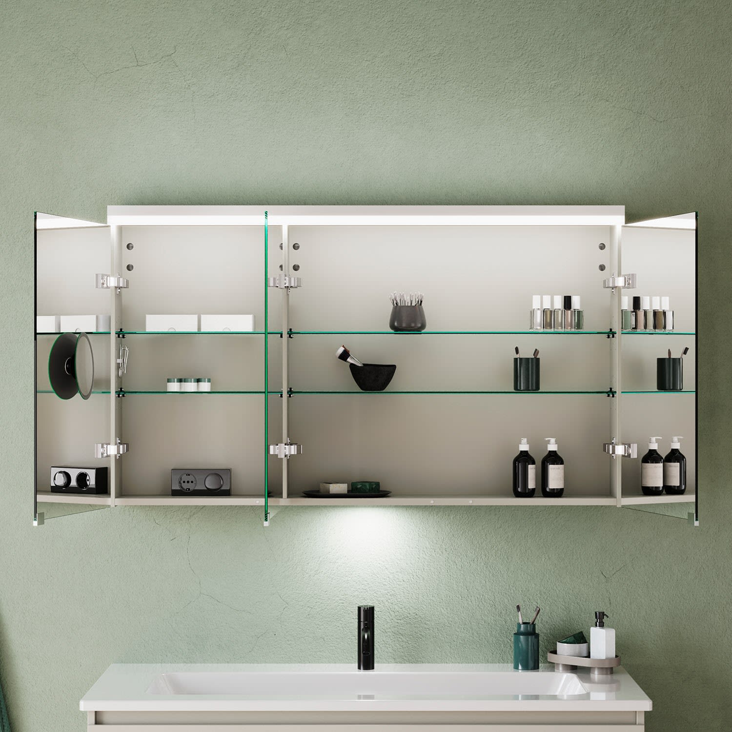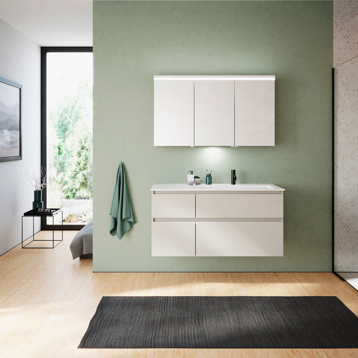 burgbad Lin20 Spiegelschrank mit LED-Beleuchtung, 120 cm, 3 Spiegeltüren, rechts, mit Waschtischbeleuchtung
