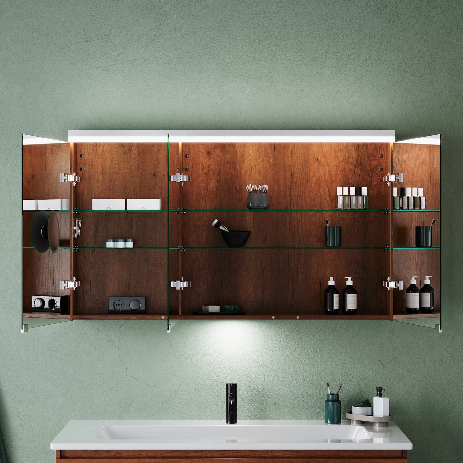 burgbad Lin20 Spiegelschrank mit LED-Beleuchtung, 120 cm, 3 Spiegeltüren, rechts, mit Waschtischbeleuchtung