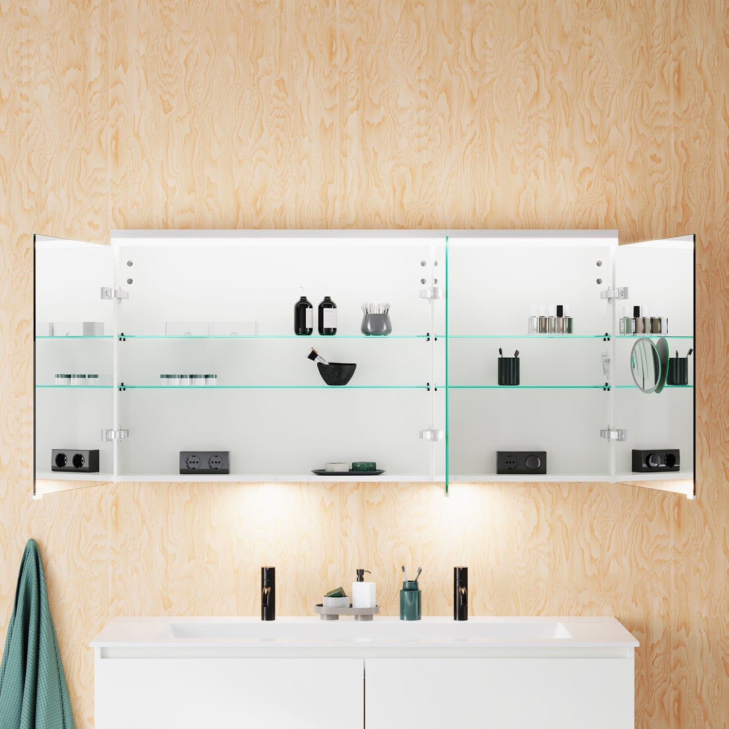 burgbad Lin20 Spiegelschrank mit LED-Beleuchtung, 140 cm, 3 Spiegeltüren, links, mit Waschtischbeleuchtung
