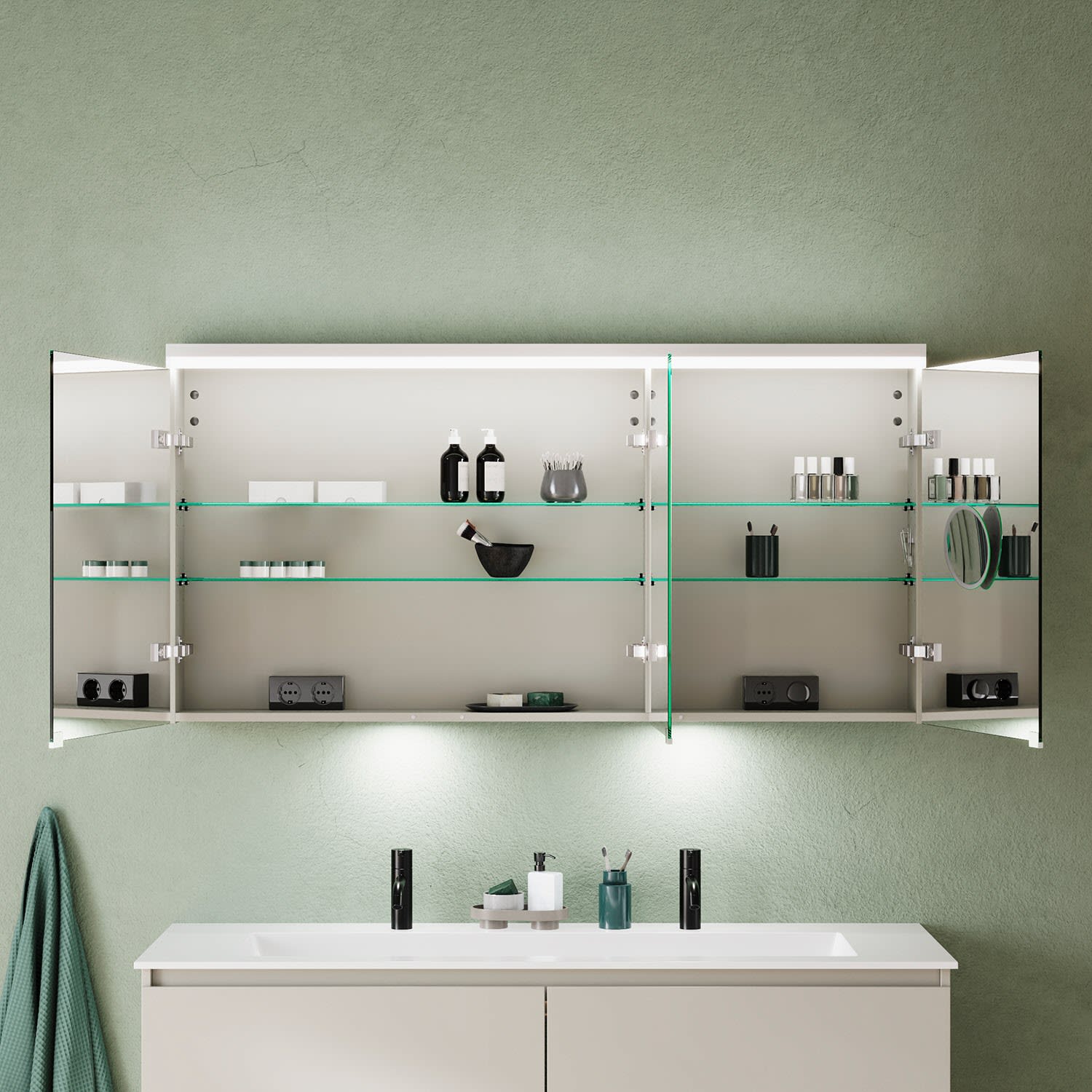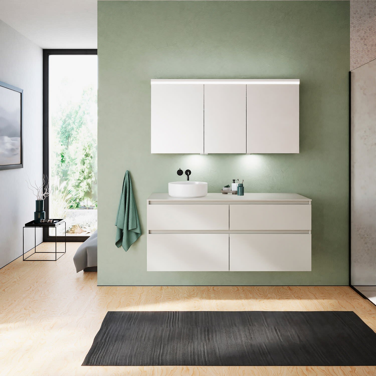 burgbad Lin20 Spiegelschrank mit LED-Beleuchtung, 140 cm, 3 Spiegeltüren, links, mit Waschtischbeleuchtung