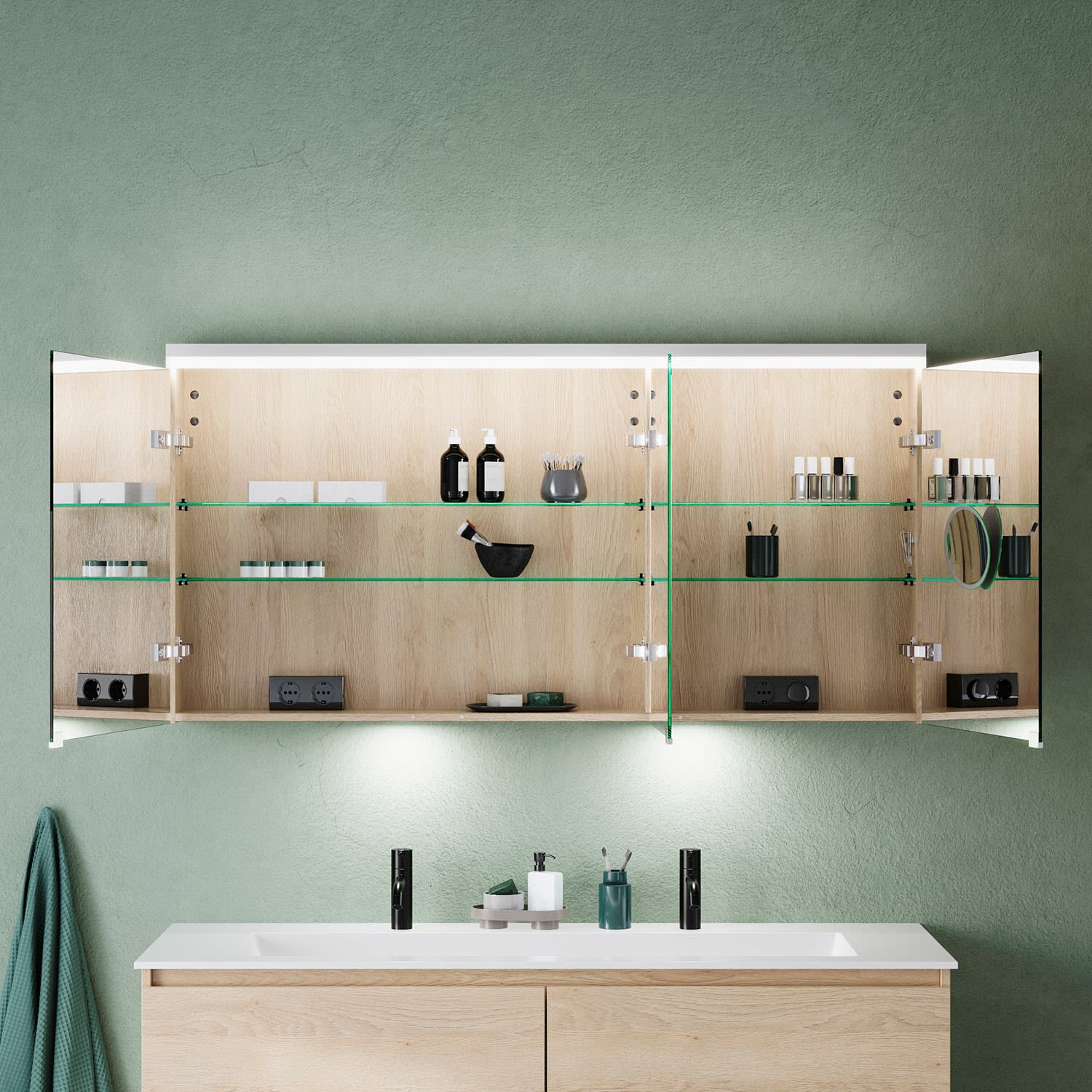 burgbad Lin20 Spiegelschrank mit LED-Beleuchtung, 140 cm, 3 Spiegeltüren, links, mit Waschtischbeleuchtung