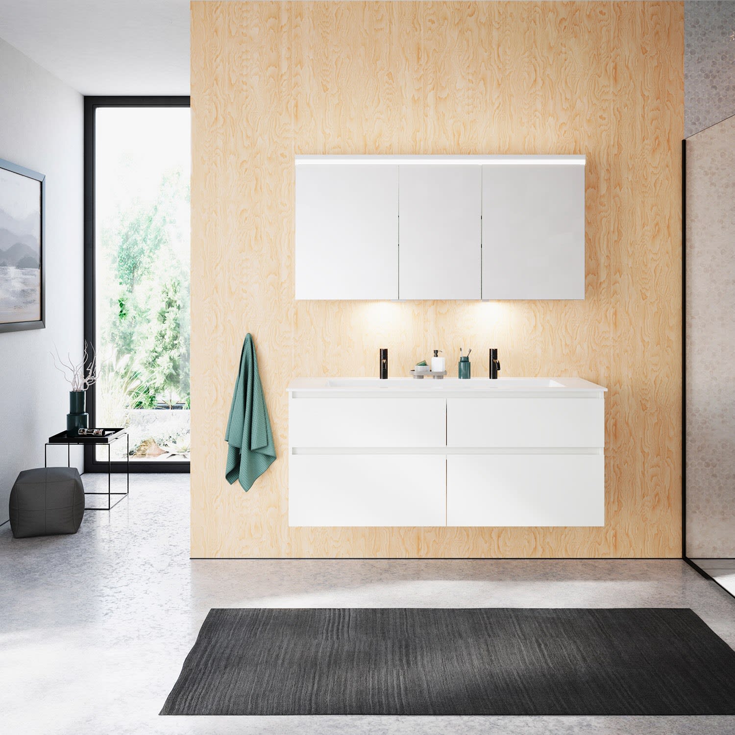burgbad Lin20 Spiegelschrank mit LED-Beleuchtung, 140 cm, 3 Spiegeltüren, links, mit Waschtischbeleuchtung