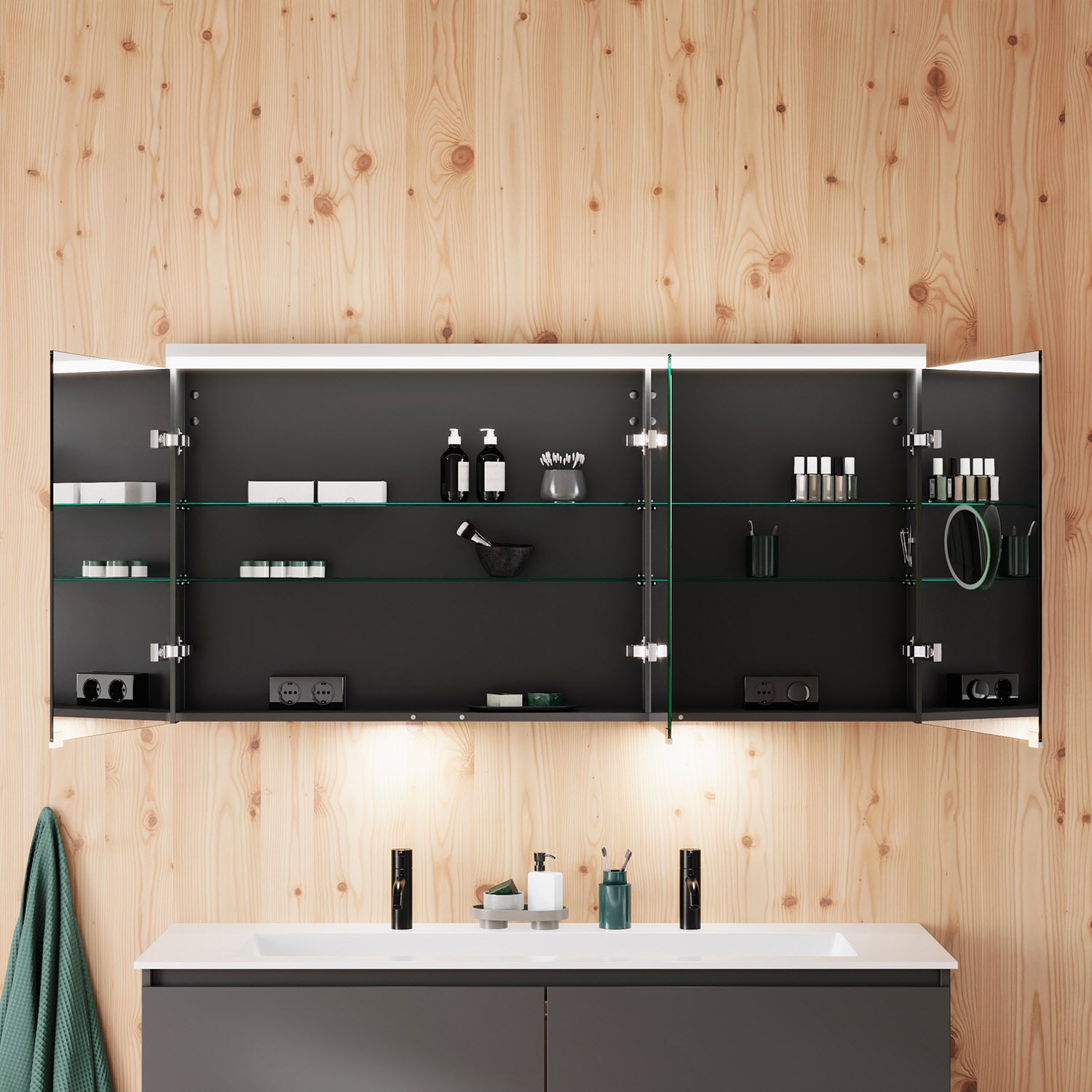 burgbad Lin20 Spiegelschrank mit LED-Beleuchtung, 140 cm, 3 Spiegeltüren, links, mit Waschtischbeleuchtung