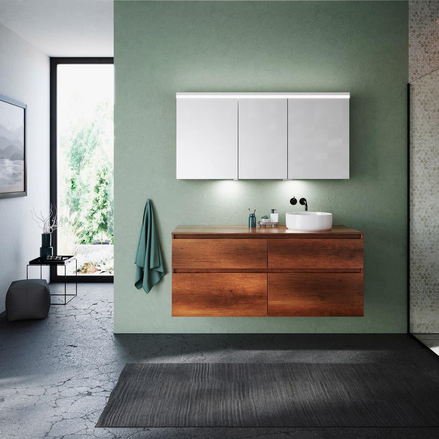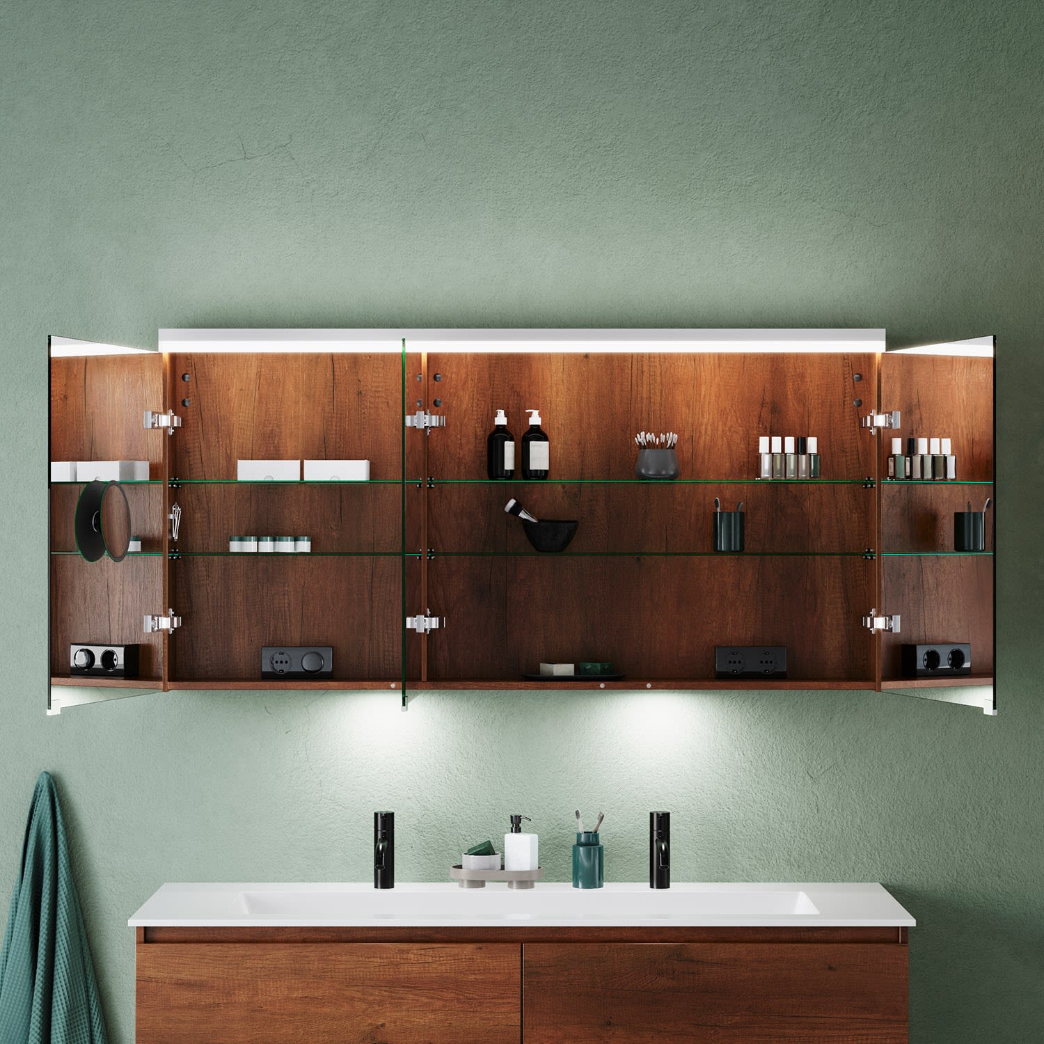 burgbad Lin20 Spiegelschrank mit LED-Beleuchtung, 140 cm, 3 Spiegeltüren, rechts, mit Waschtischbeleuchtung