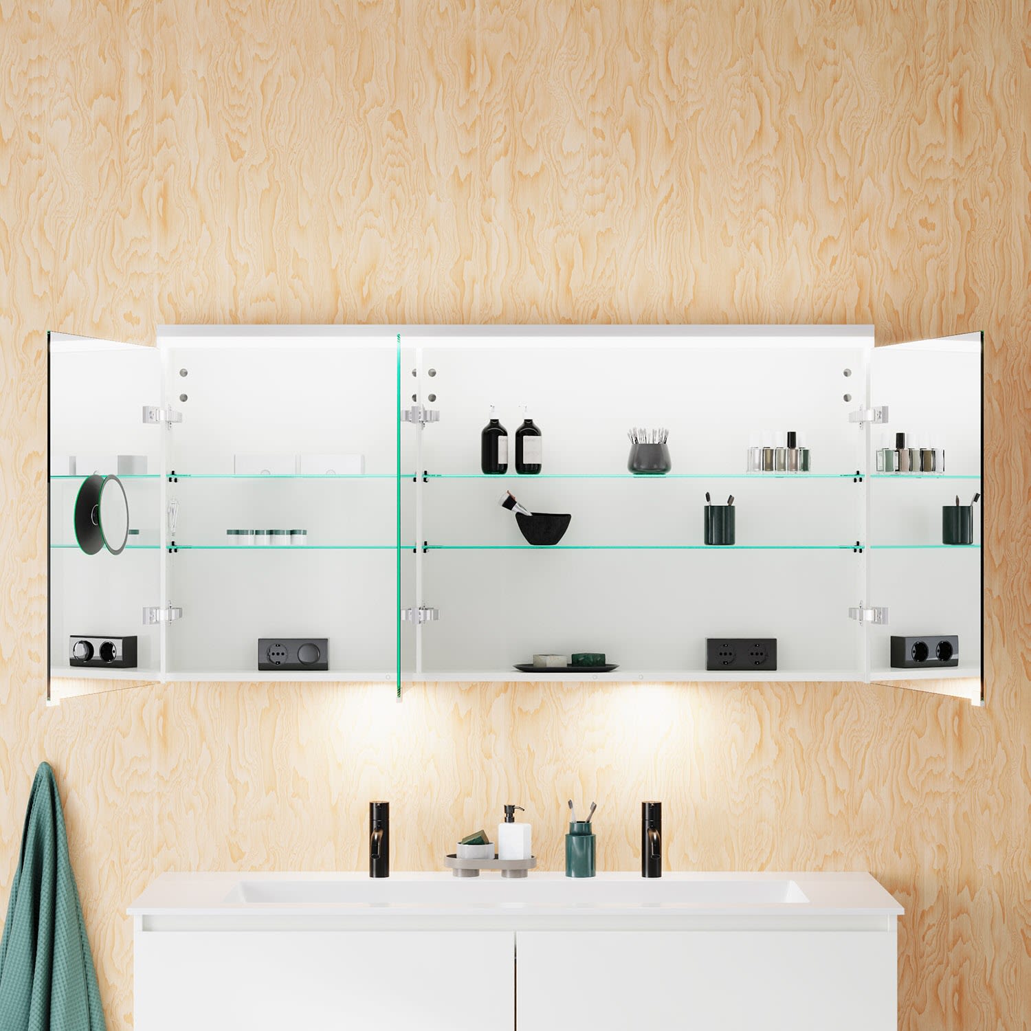 burgbad Lin20 Spiegelschrank mit LED-Beleuchtung, 140 cm, 3 Spiegeltüren, rechts, mit Waschtischbeleuchtung