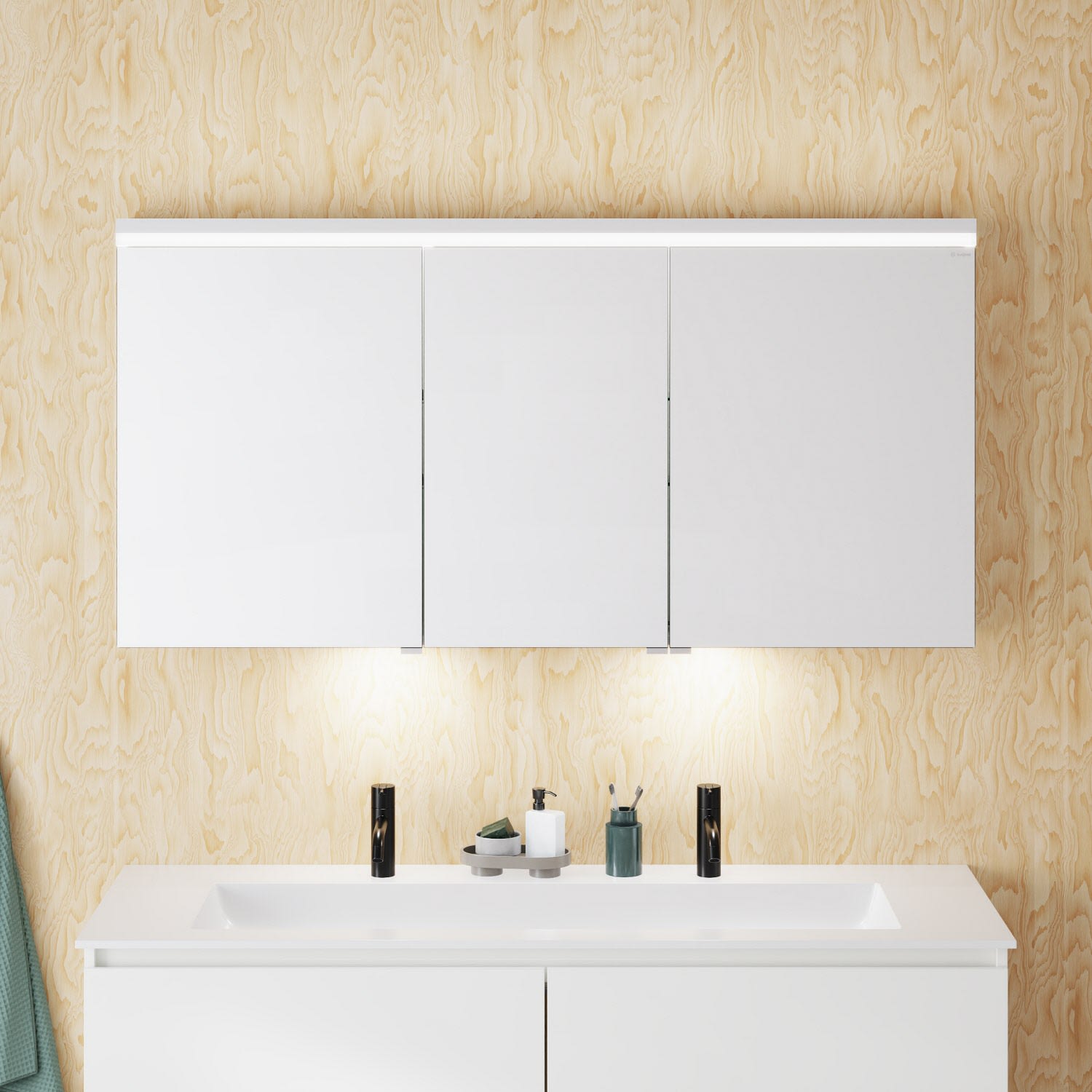 burgbad Lin20 Spiegelschrank mit LED-Beleuchtung, 140 cm, 3 Spiegeltüren, rechts, mit Waschtischbeleuchtung