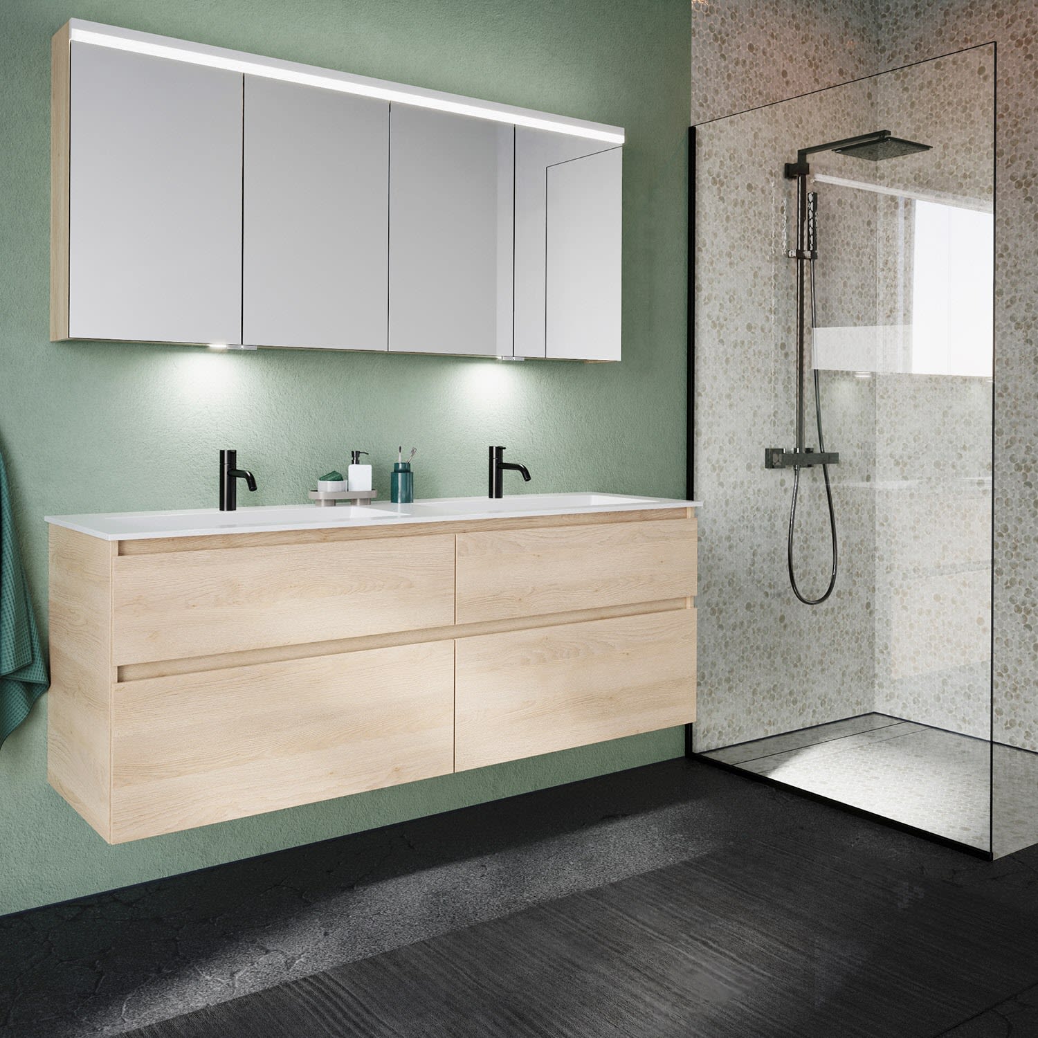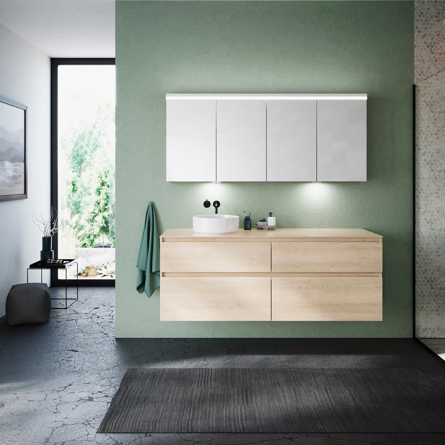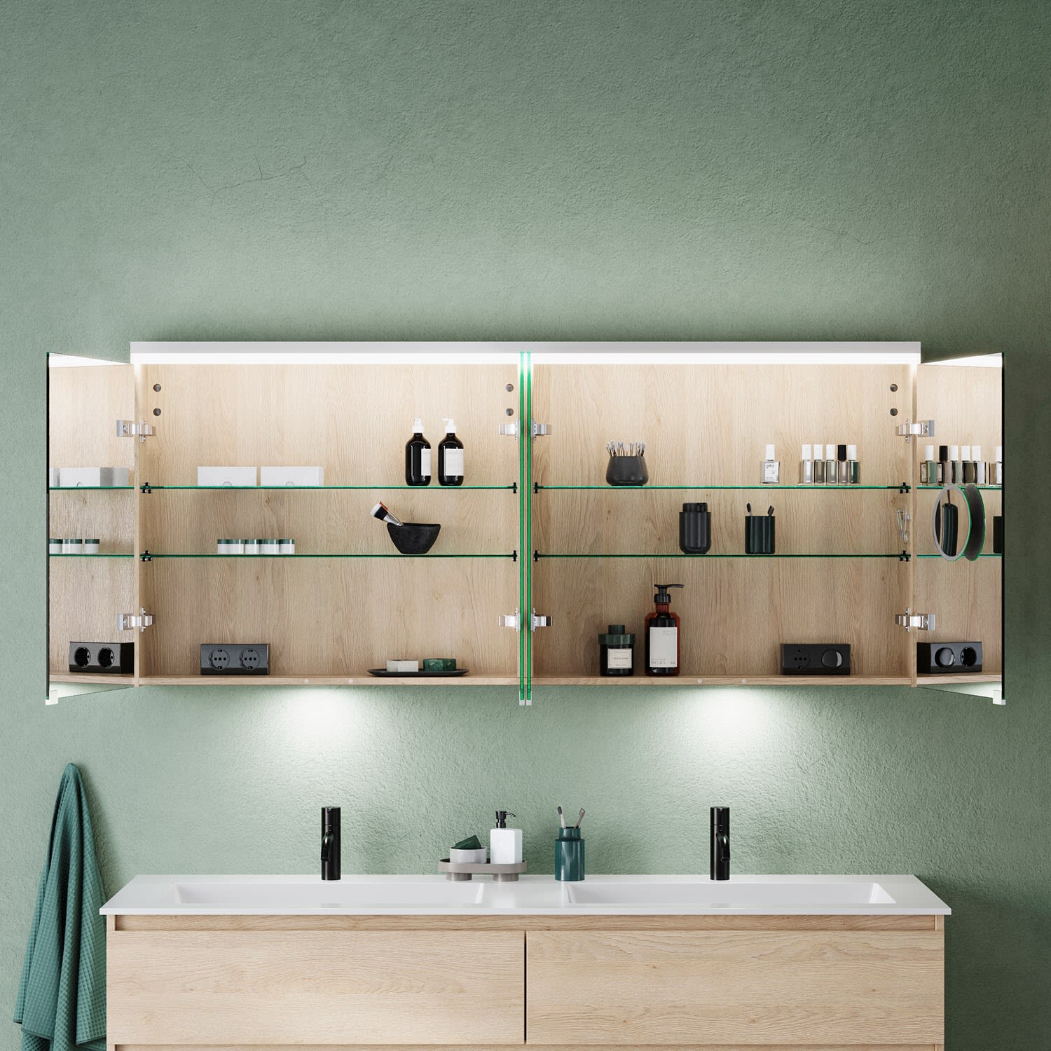 burgbad Lin20 Spiegelschrank mit LED-Beleuchtung, 160 cm, 4 Spiegeltüren, mit Waschtischbeleuchtung