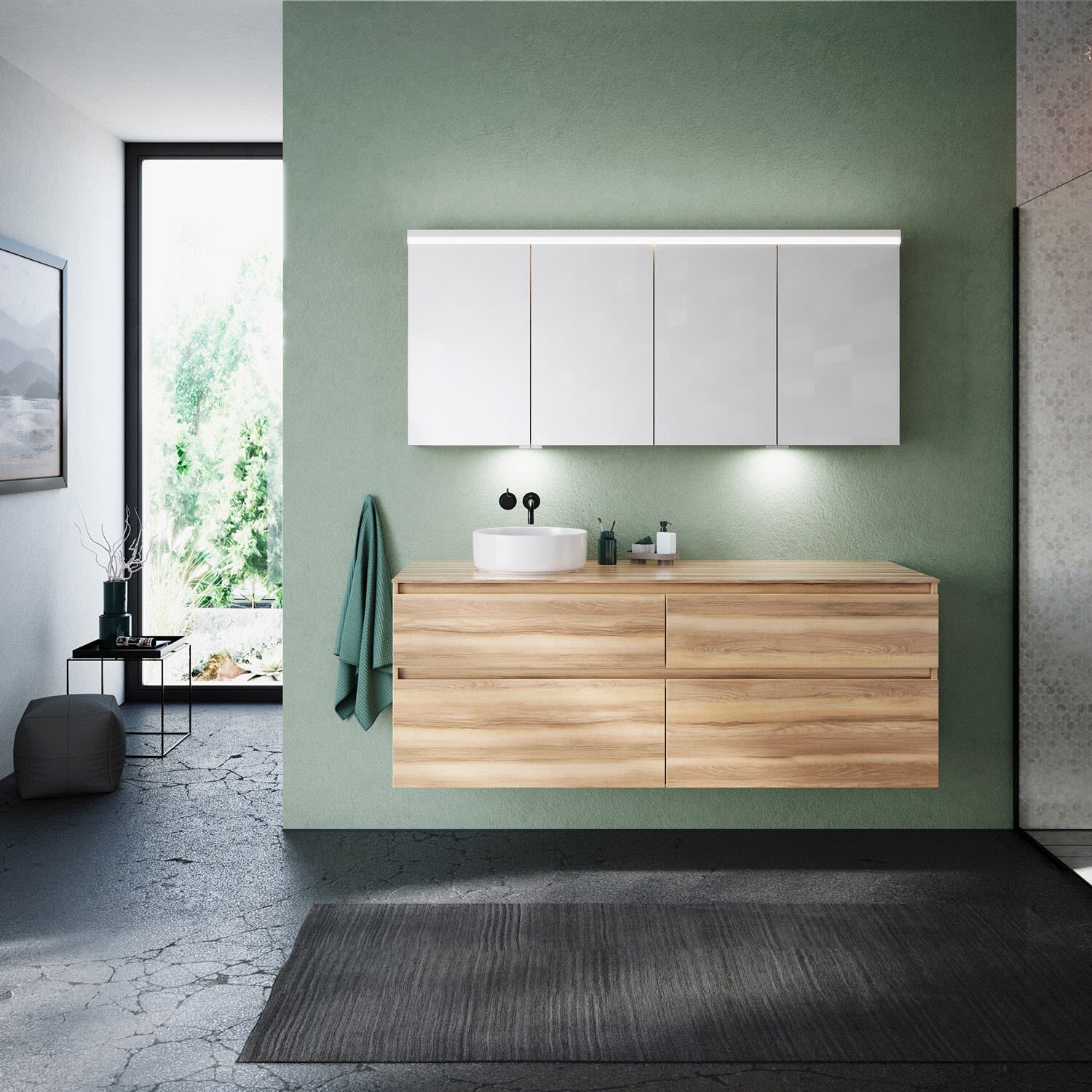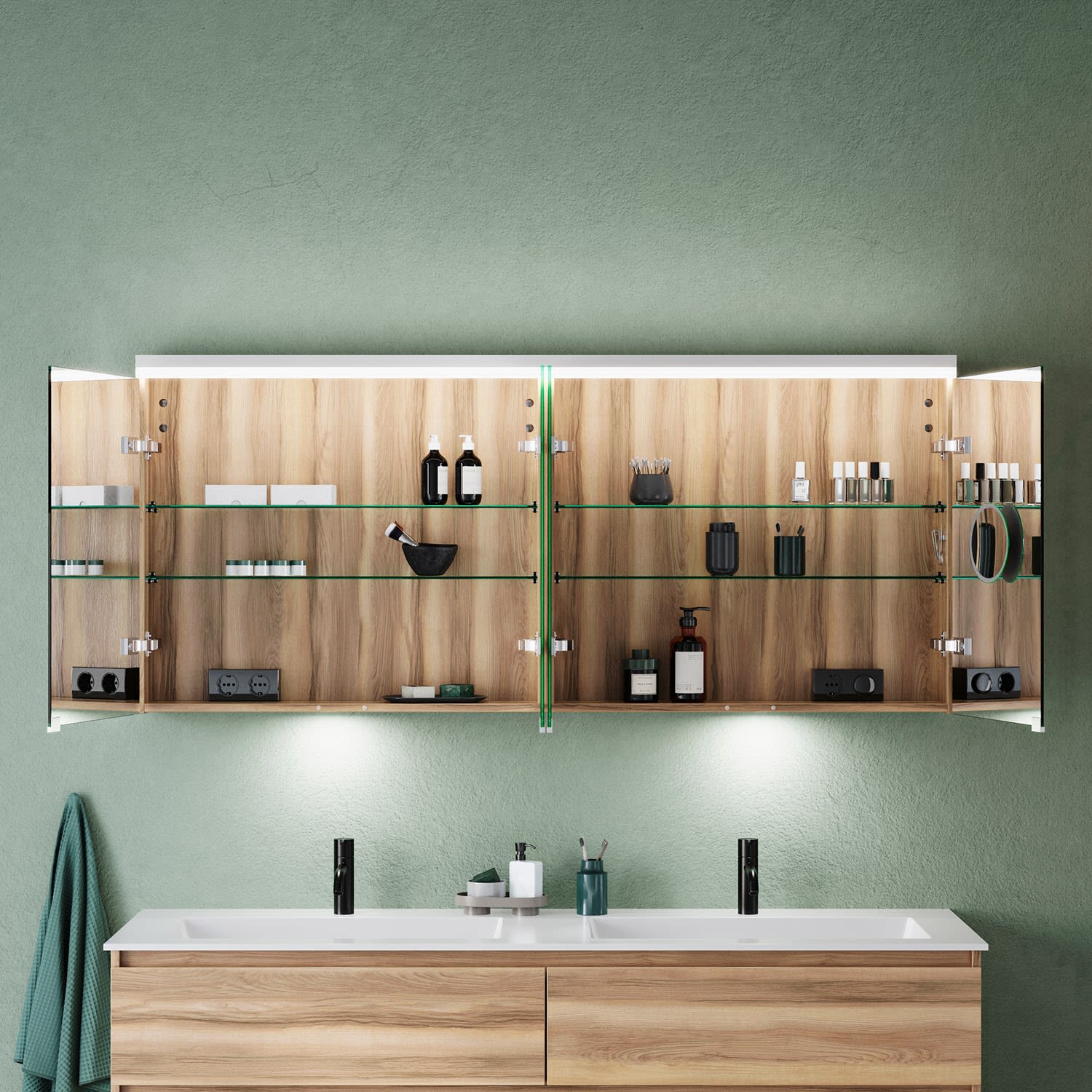 burgbad Lin20 Spiegelschrank mit LED-Beleuchtung, 160 cm, 4 Spiegeltüren, mit Waschtischbeleuchtung