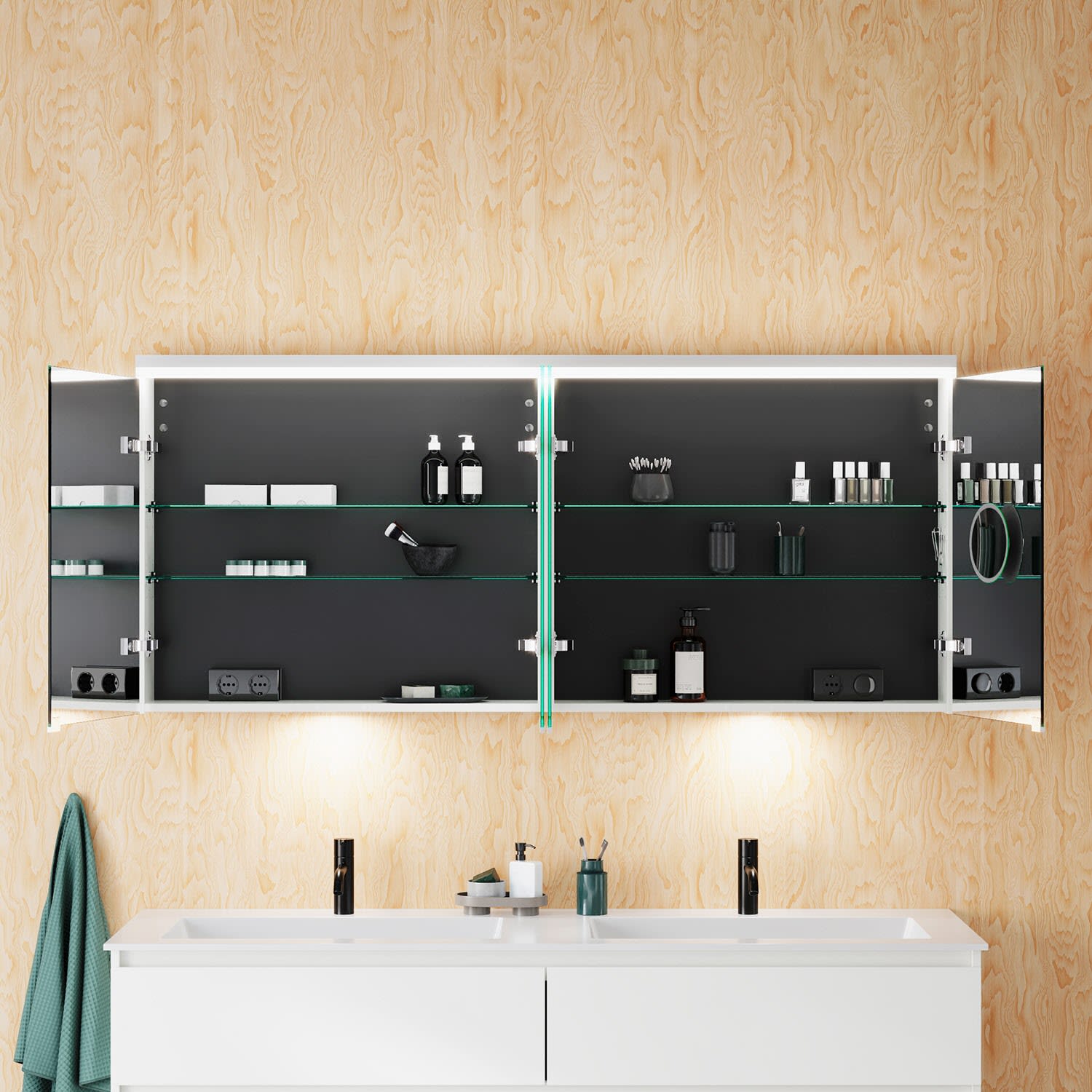 burgbad Lin20 Spiegelschrank mit LED-Beleuchtung, 160 cm, 4 Spiegeltüren, mit Waschtischbeleuchtung