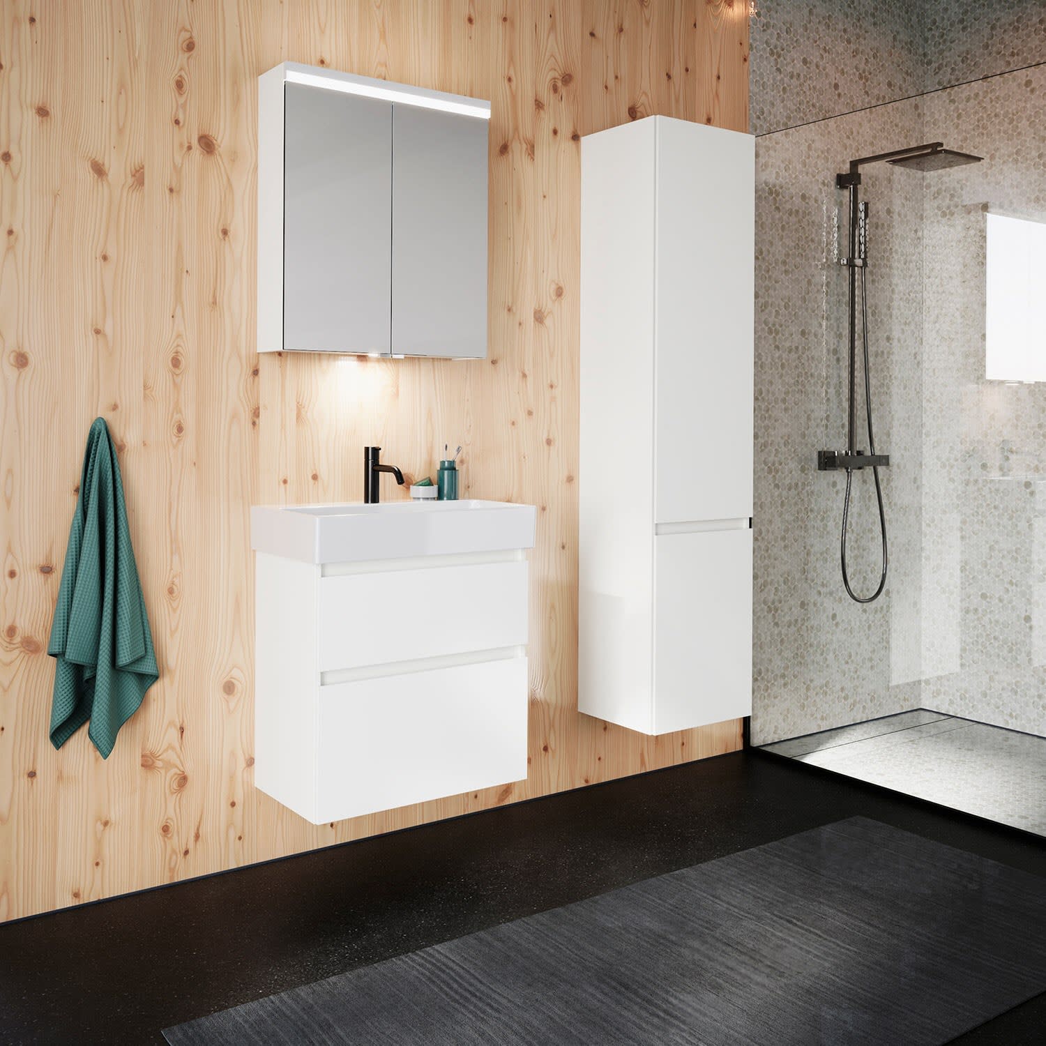 burgbad Lin20 Waschtischunterschrank mit Keramik-Waschtisch 63 cm, 2 Auszüge