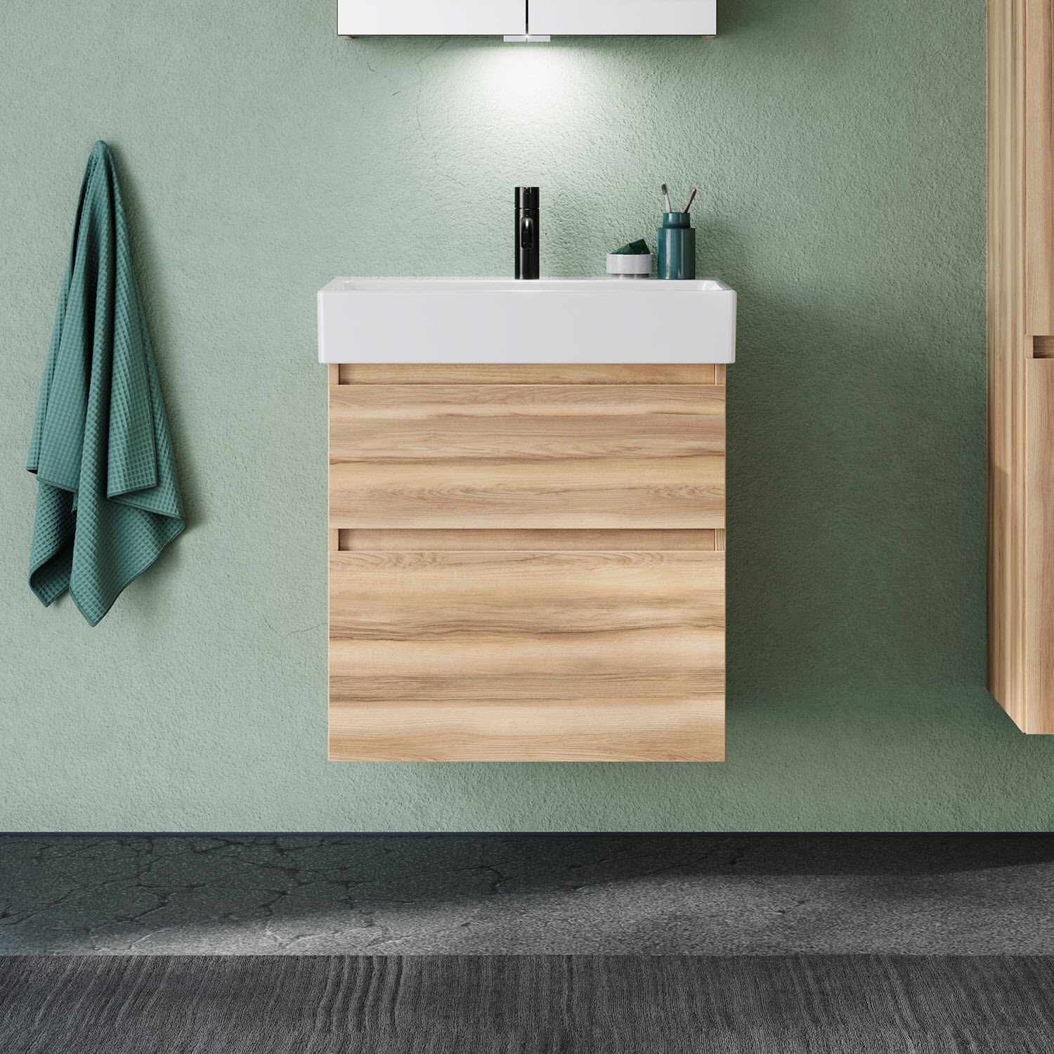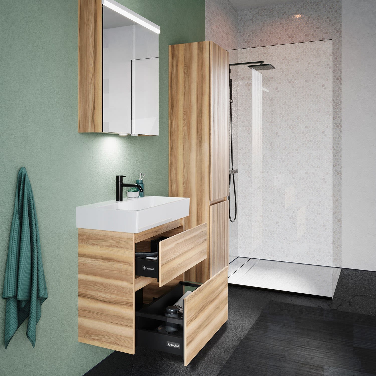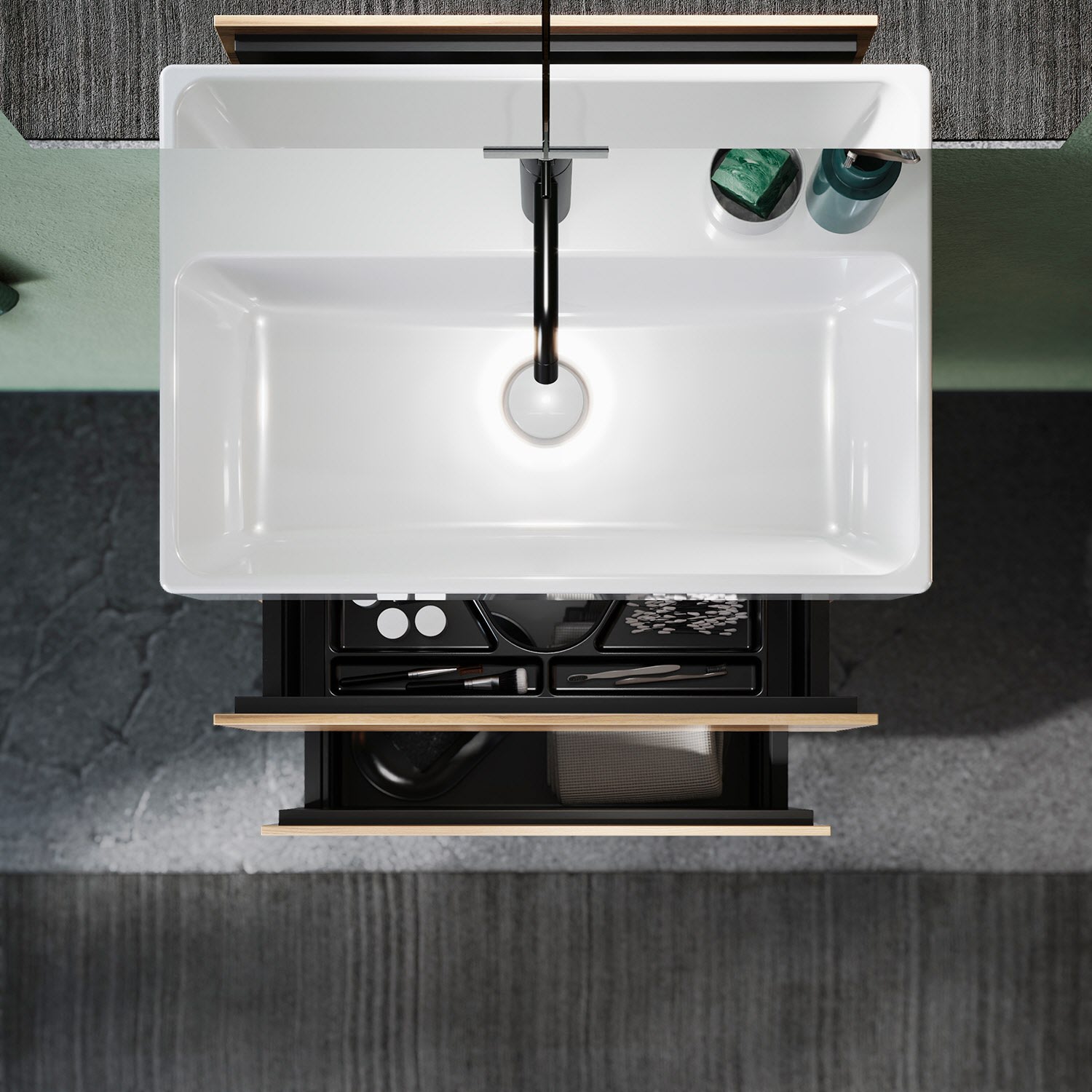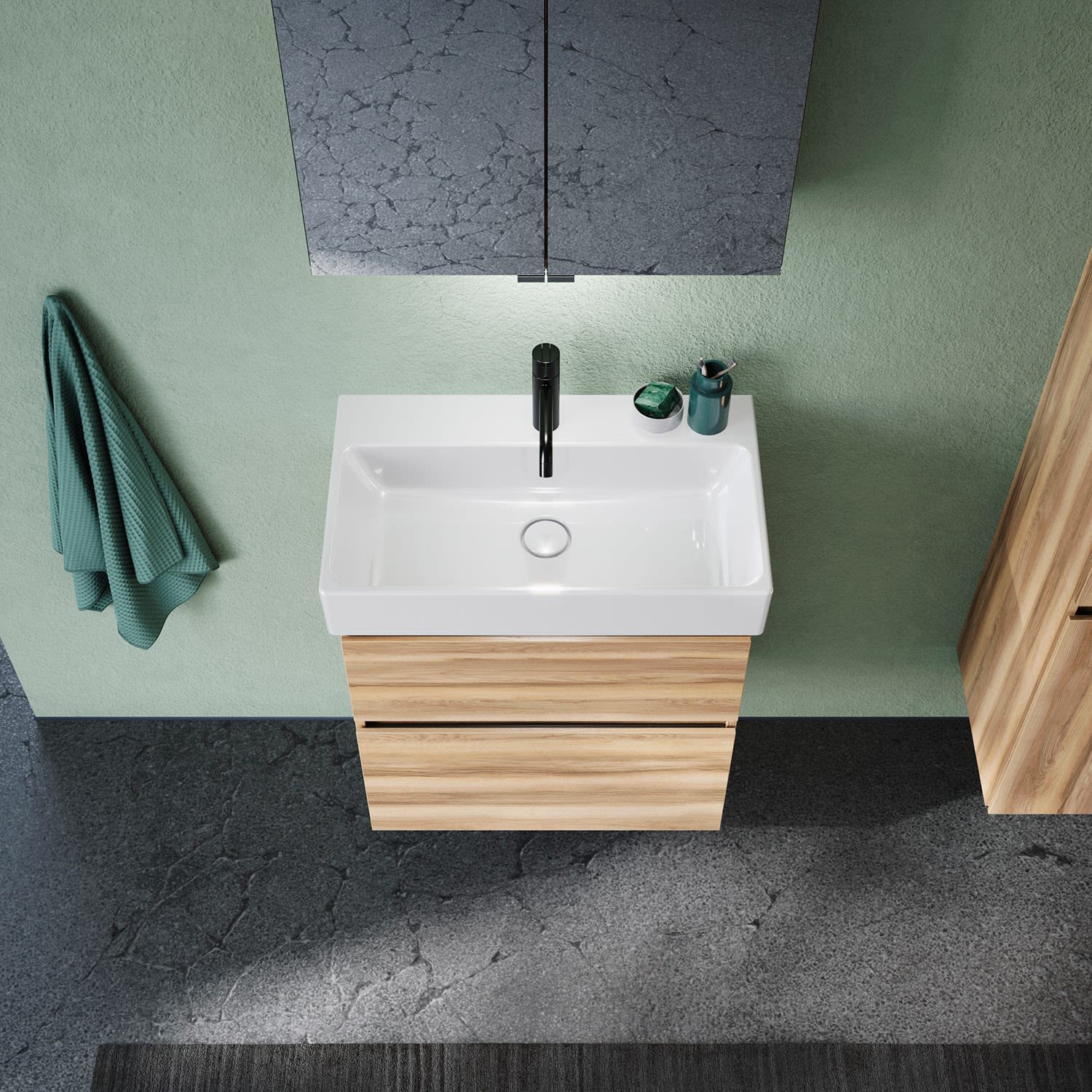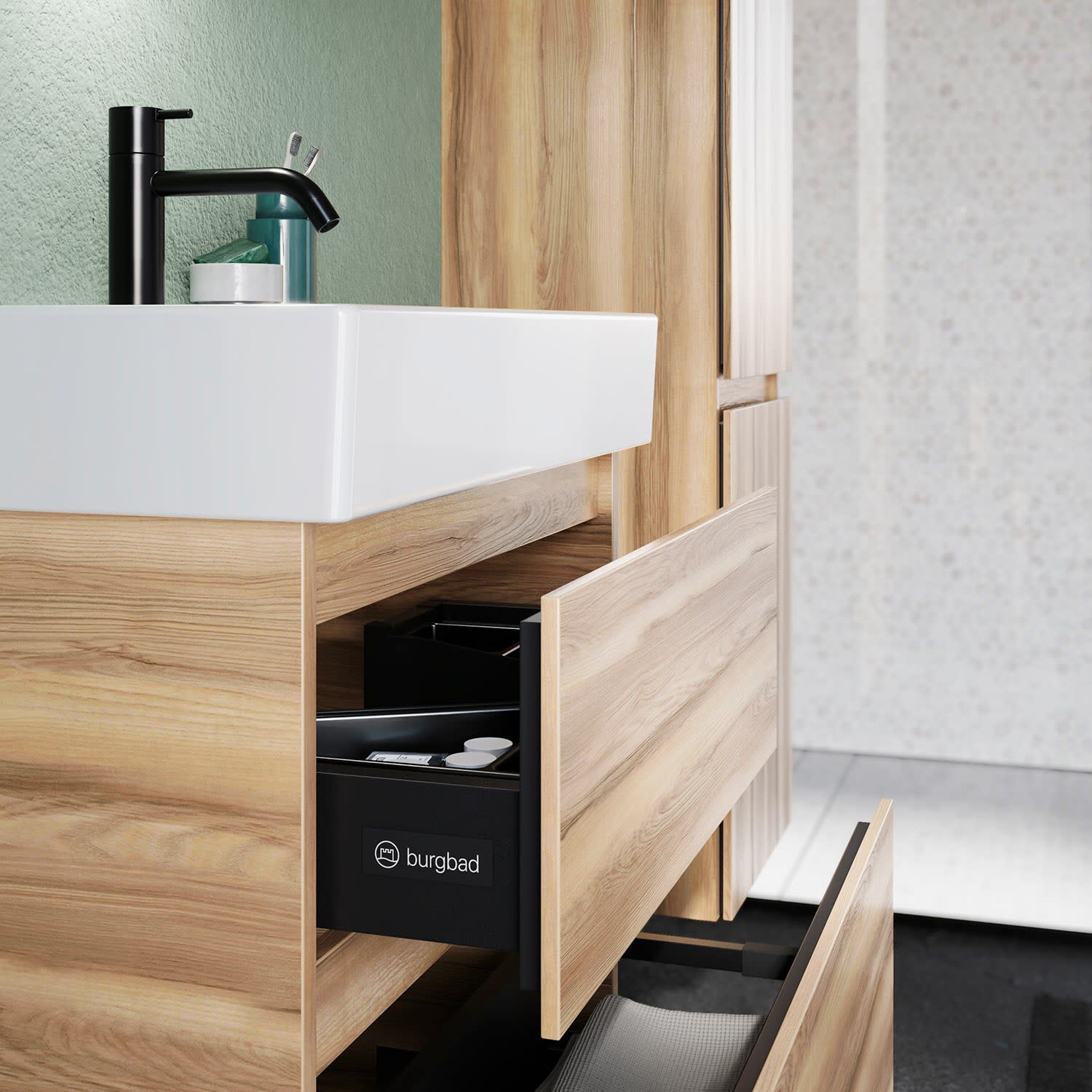 burgbad Lin20 Waschtischunterschrank mit Keramik-Waschtisch 63 cm, 2 Auszüge