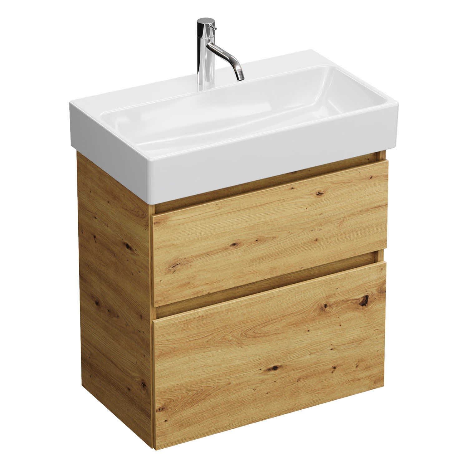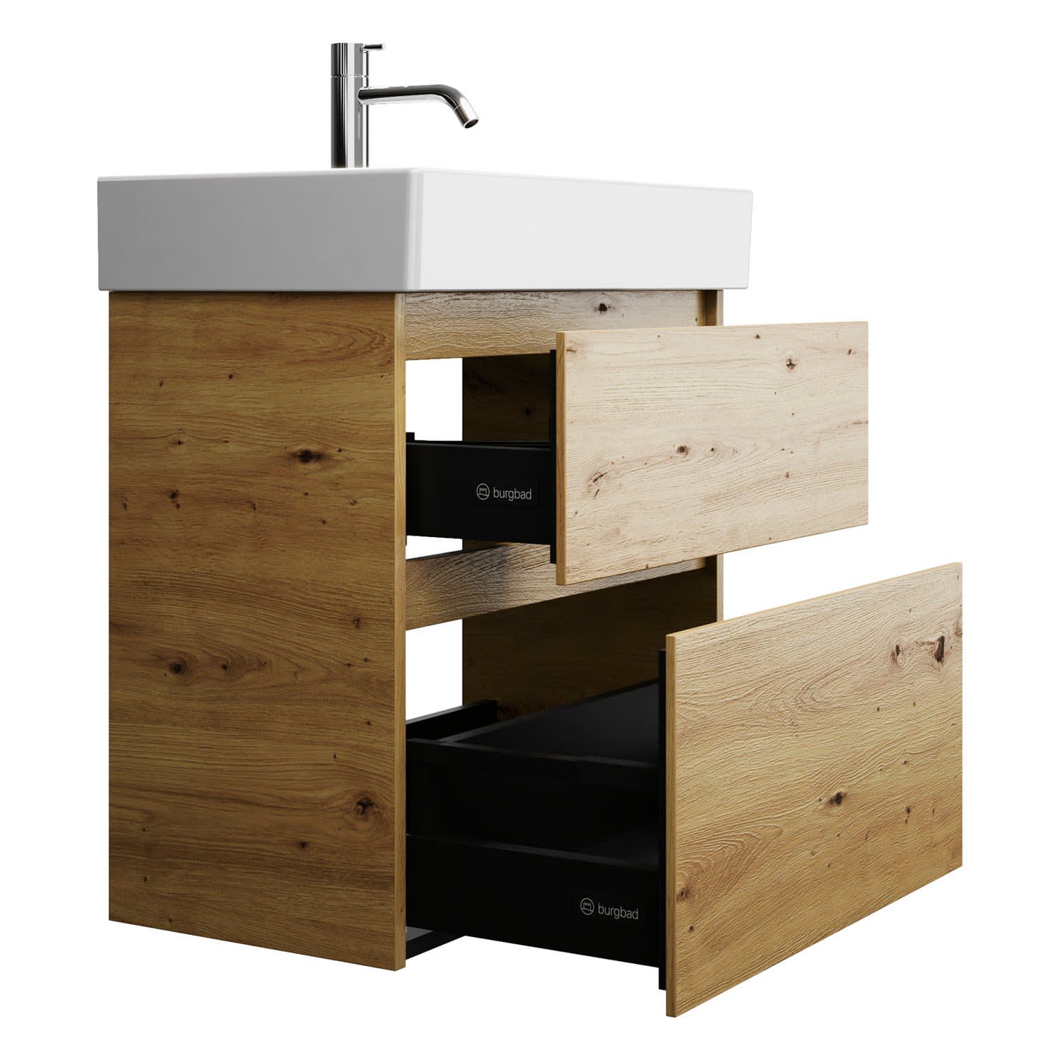 burgbad Lin20 Waschtischunterschrank mit Keramik-Waschtisch 63 cm, 2 Auszüge