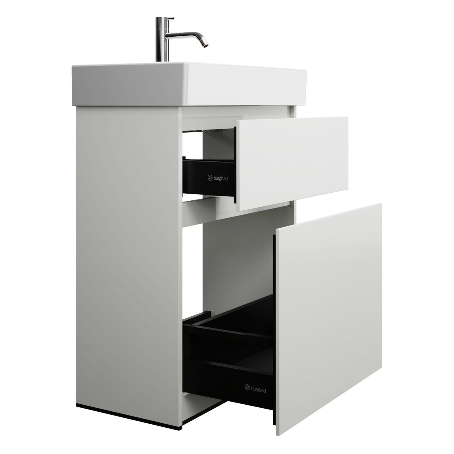 burgbad Lin20 Waschtischunterschrank mit Keramik-Waschtisch 63 cm, 2 Auszüge