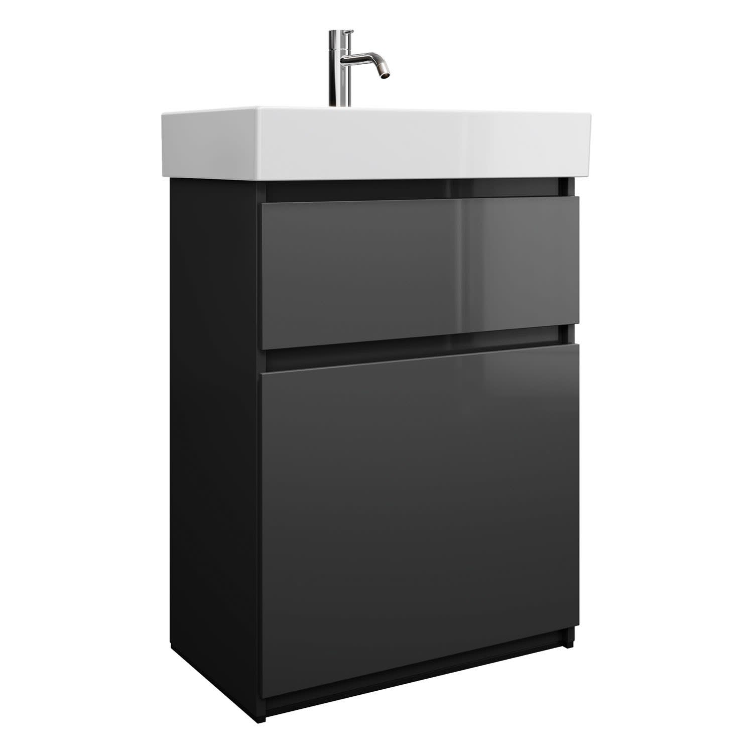 burgbad Lin20 Waschtischunterschrank mit Keramik-Waschtisch 63 cm, 2 Auszüge