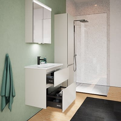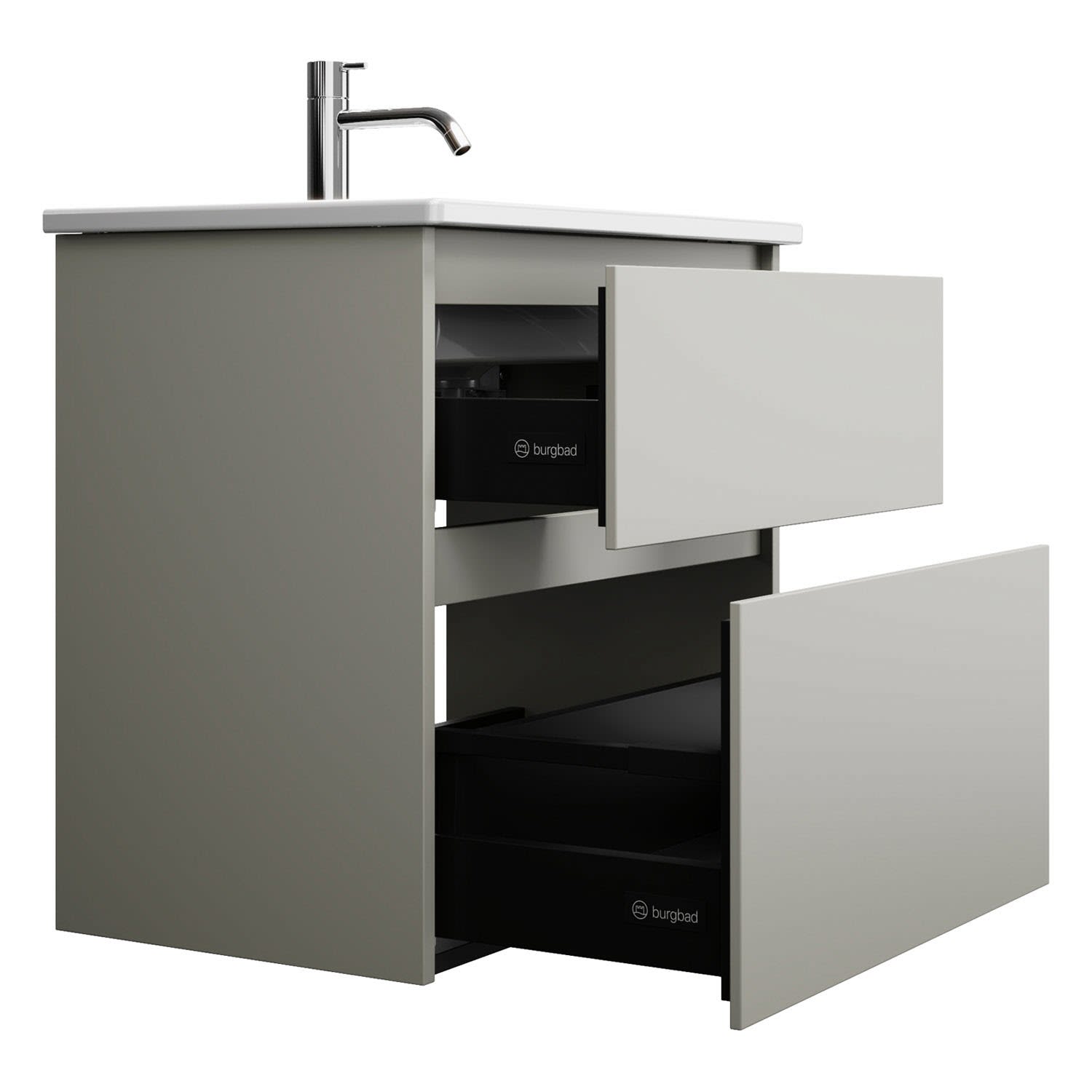 burgbad Lin20 Waschtischunterschrank mit Keramik-Waschtisch 63 cm, 2 Auszüge