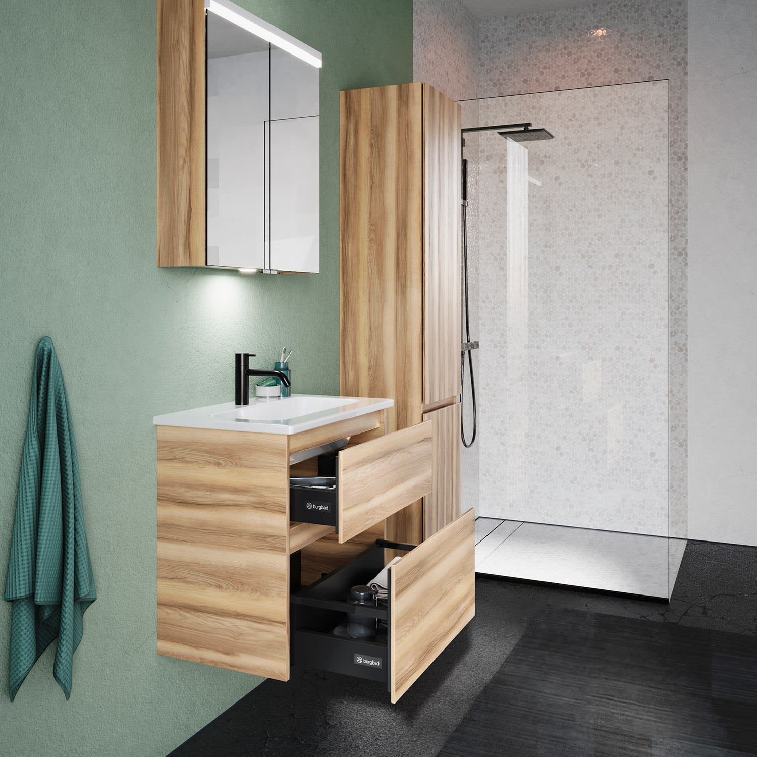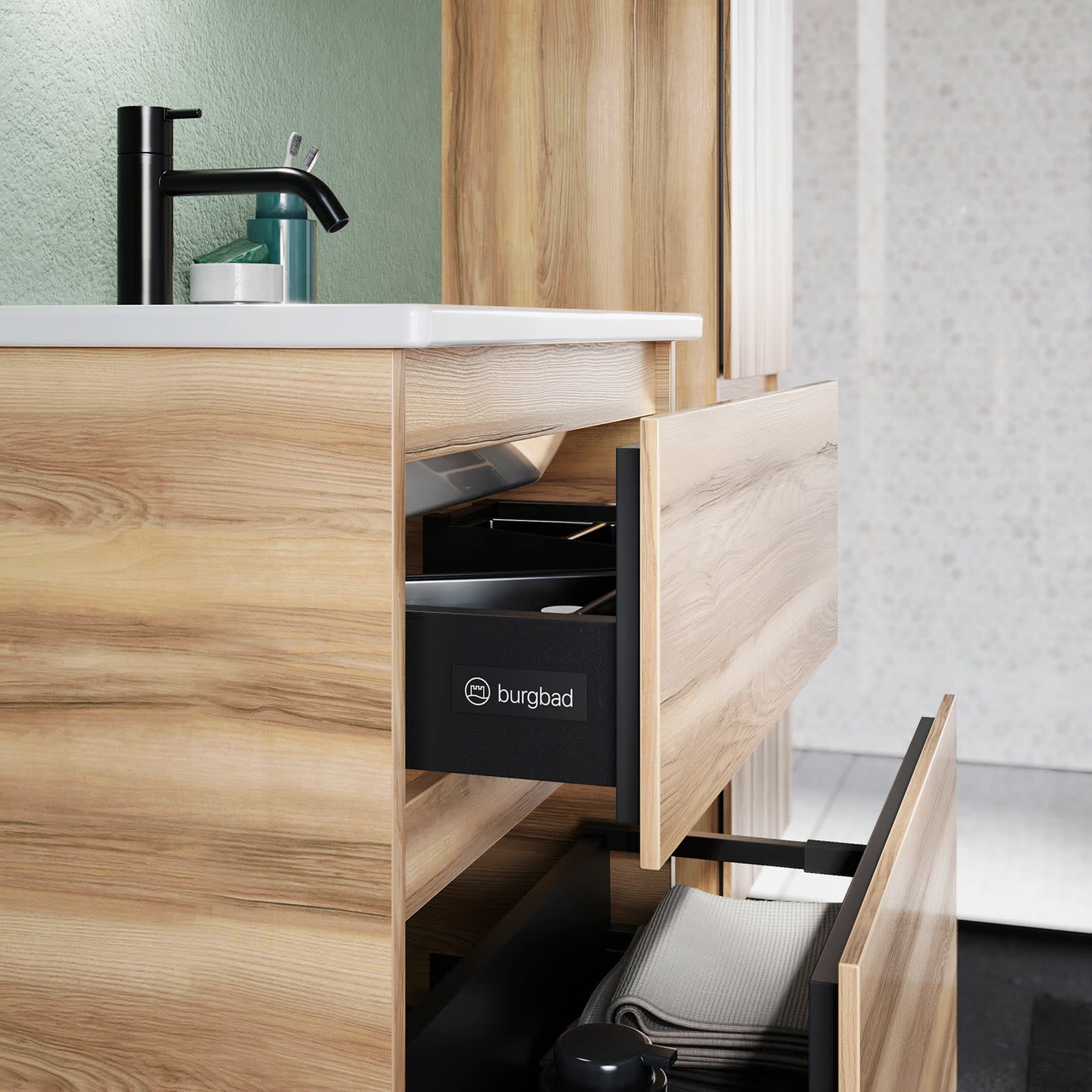 burgbad Lin20 Waschtischunterschrank mit Keramik-Waschtisch 63 cm, 2 Auszüge
