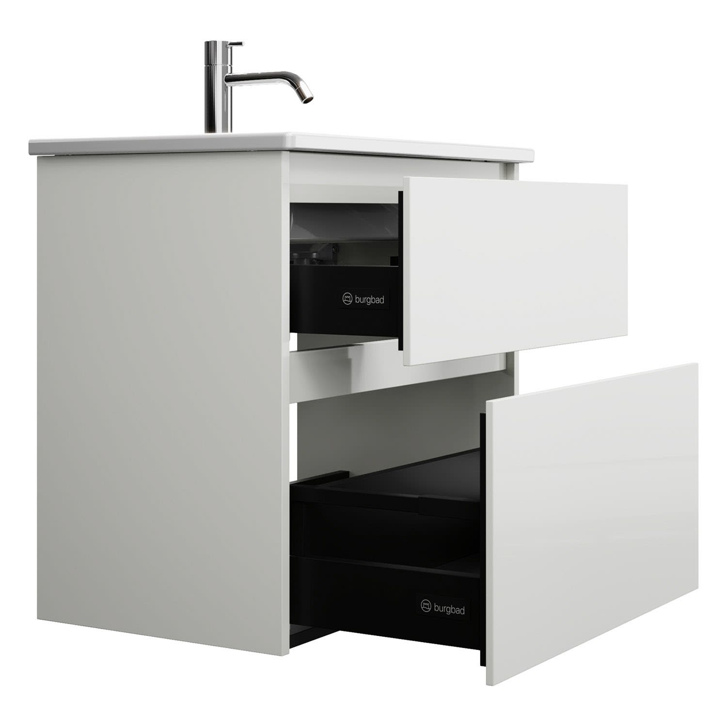 burgbad Lin20 Waschtischunterschrank mit Keramik-Waschtisch 63 cm, 2 Auszüge