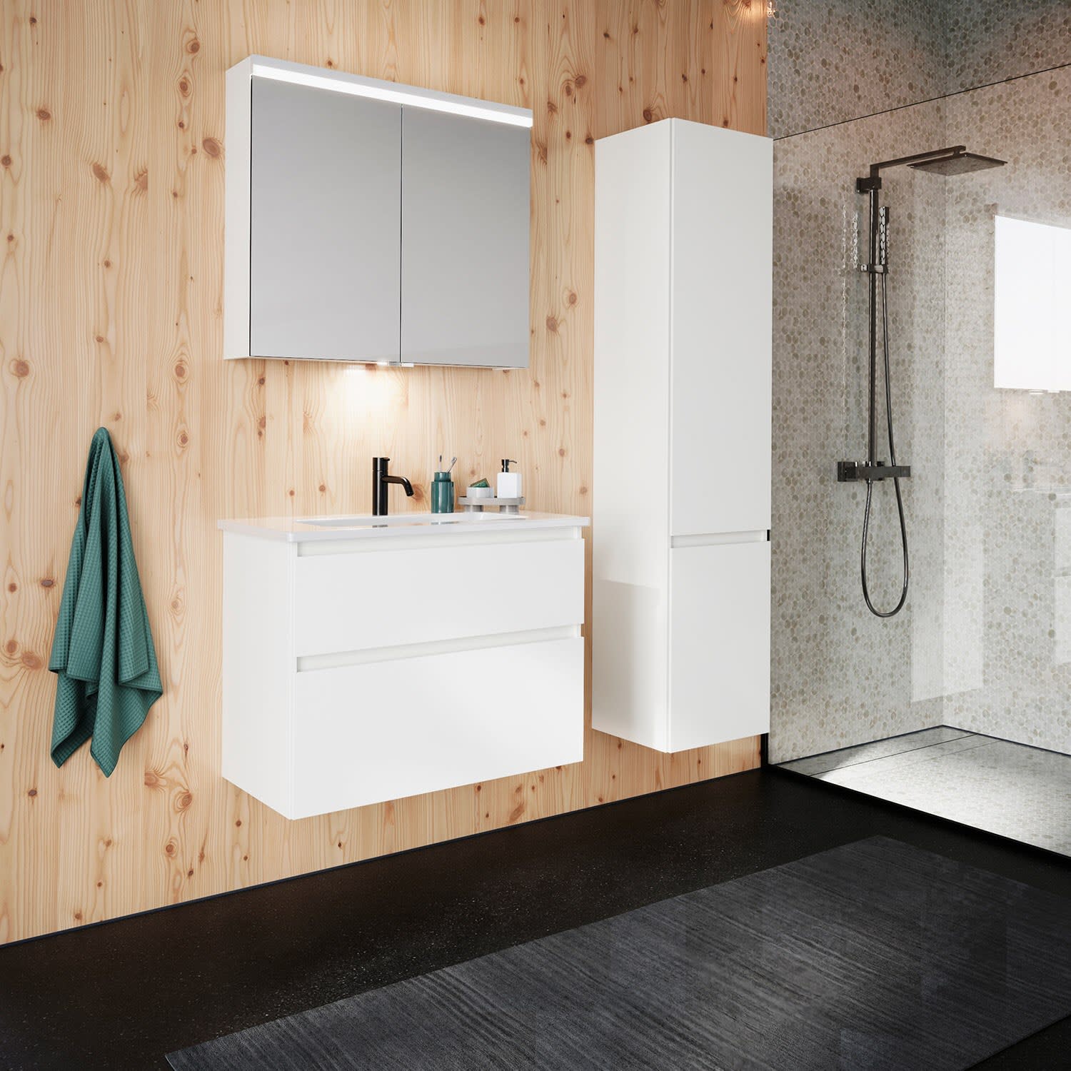burgbad Lin20 Waschtischunterschrank mit Keramik-Waschtisch 83 cm, 2 Auszüge