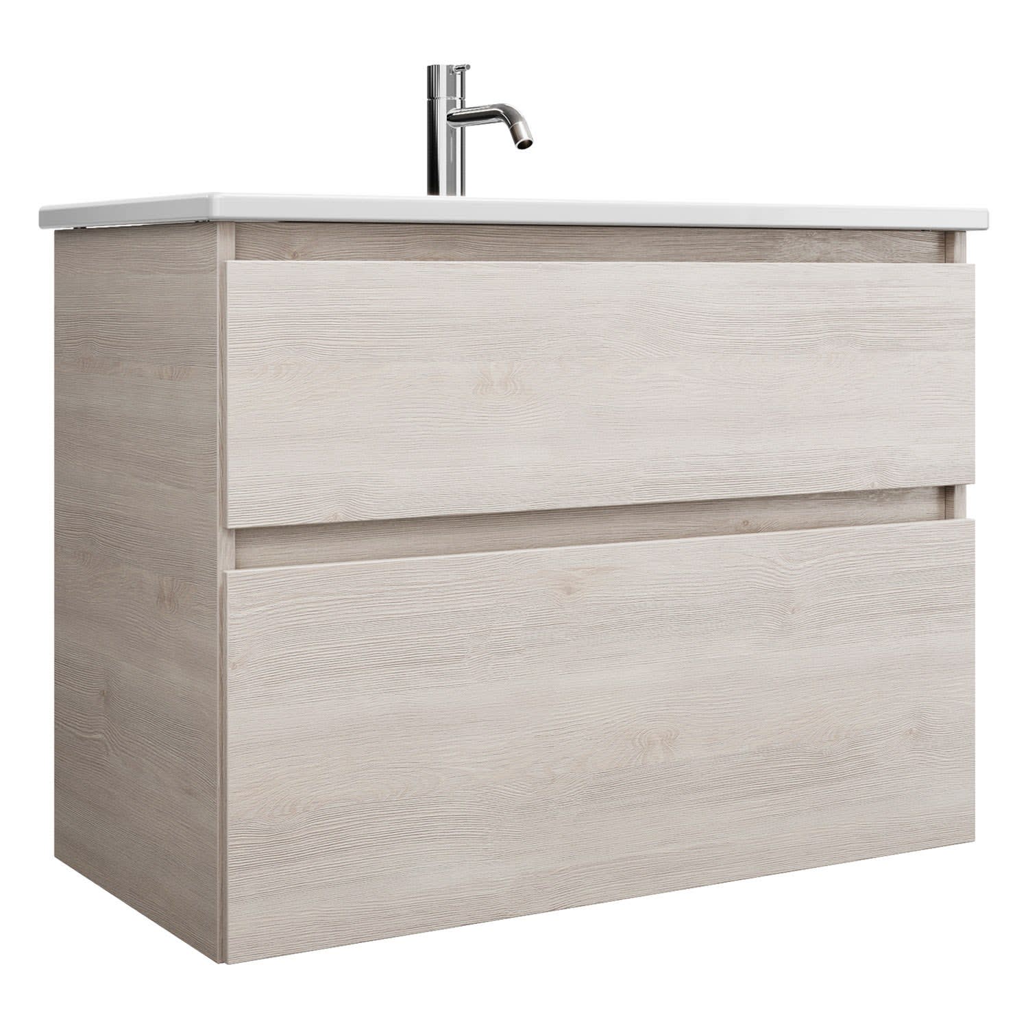 burgbad Lin20 Waschtischunterschrank mit Keramik-Waschtisch 83 cm, 2 Auszüge