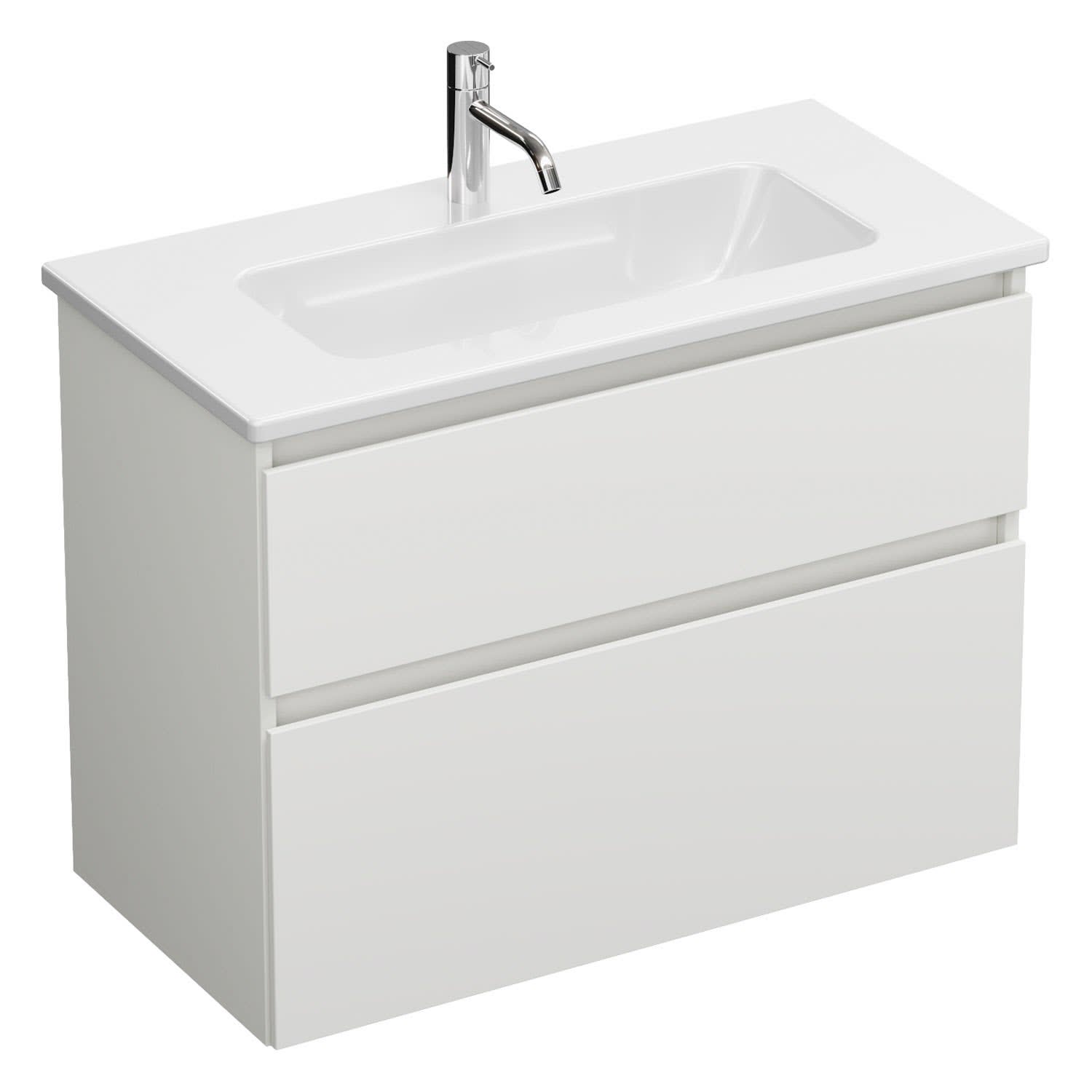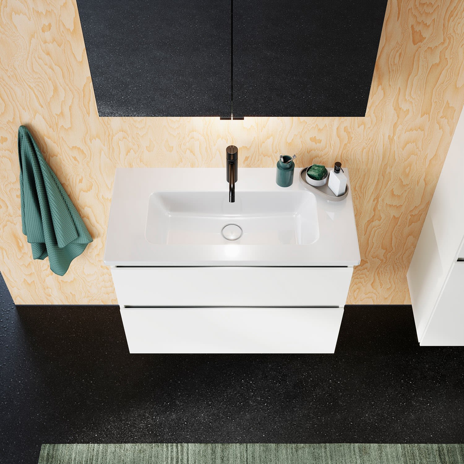 burgbad Lin20 Waschtischunterschrank mit Keramik-Waschtisch 83 cm, 2 Auszüge