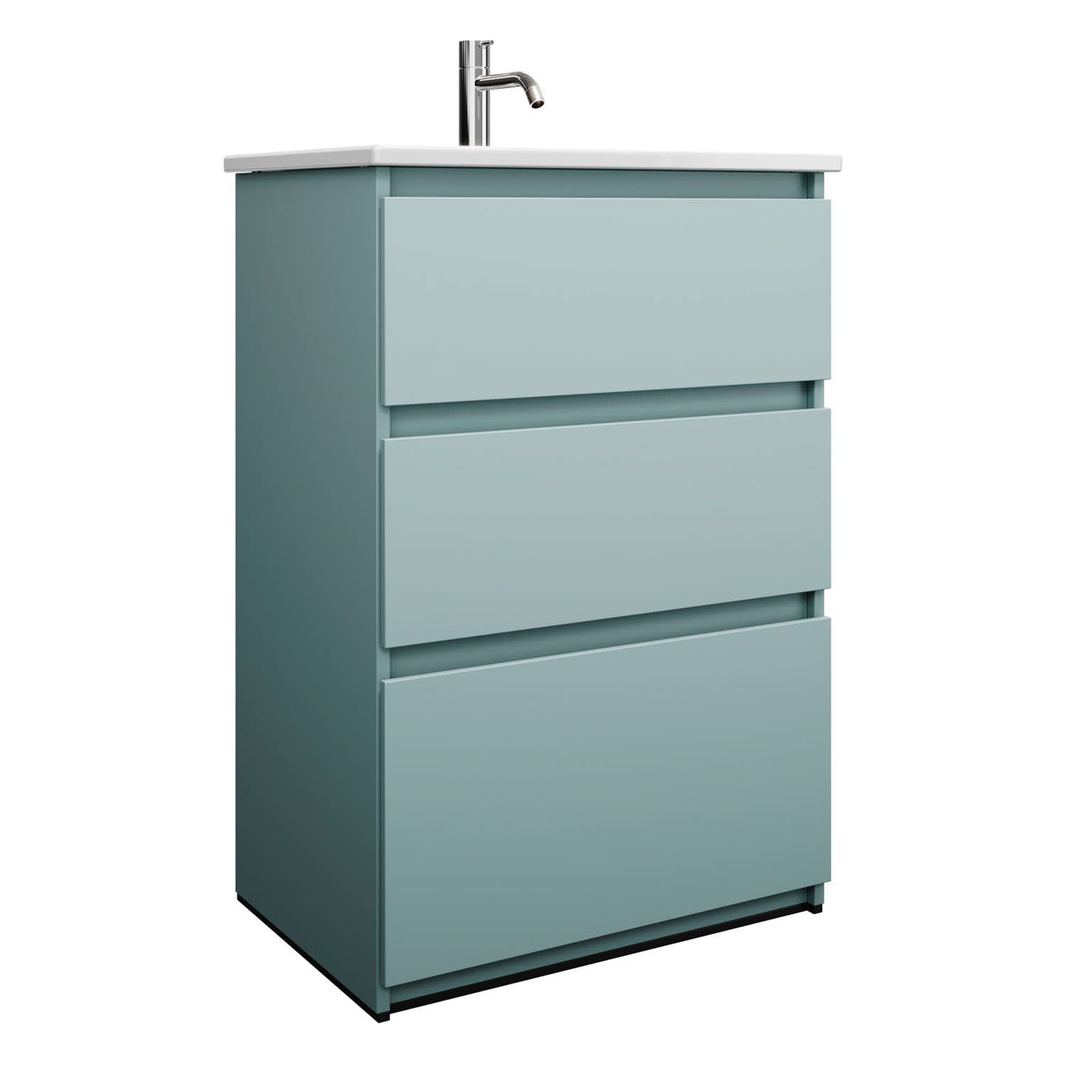 burgbad Lin20 Waschtischunterschrank mit Keramik-Waschtisch 63 cm, 3 Auszüge