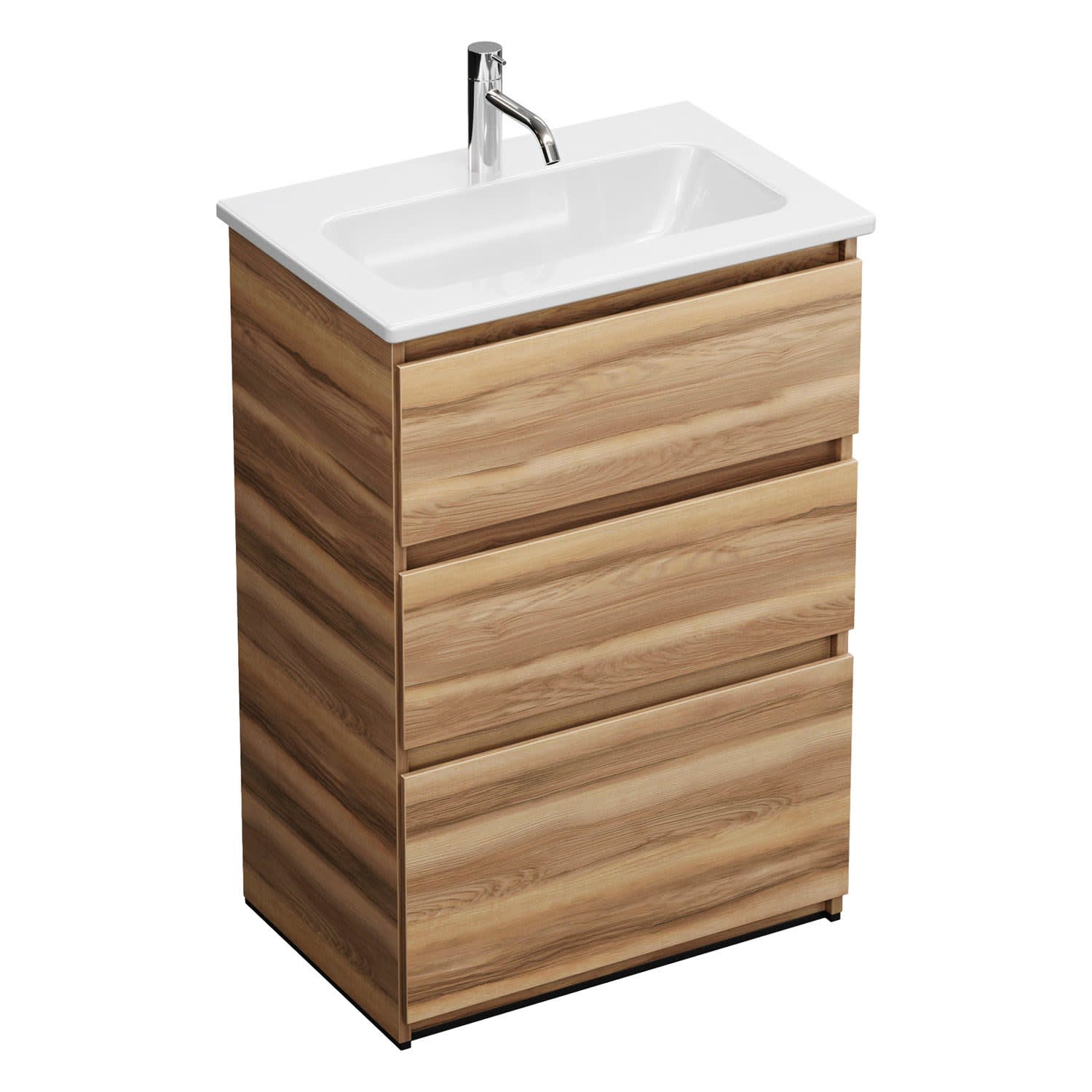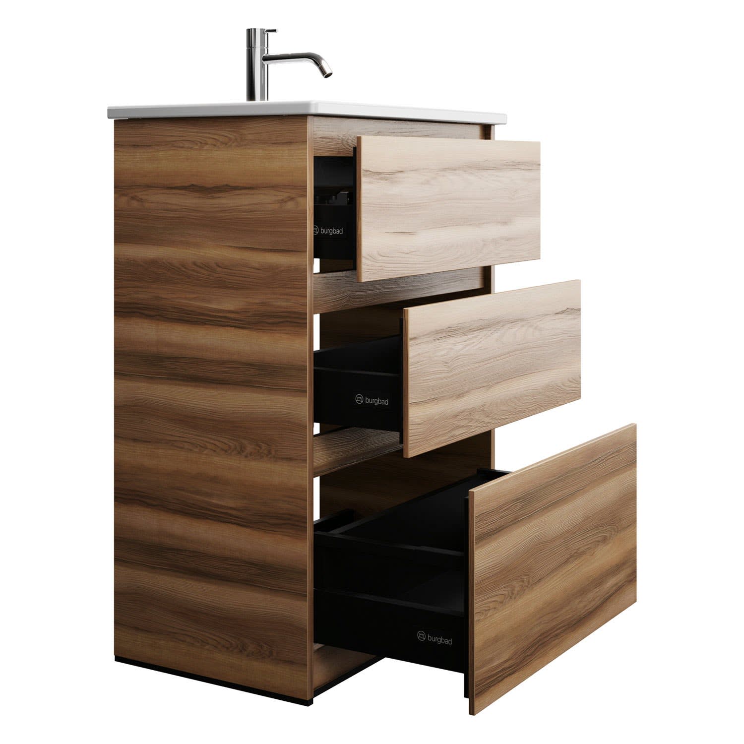 burgbad Lin20 Waschtischunterschrank mit Keramik-Waschtisch 63 cm, 3 Auszüge