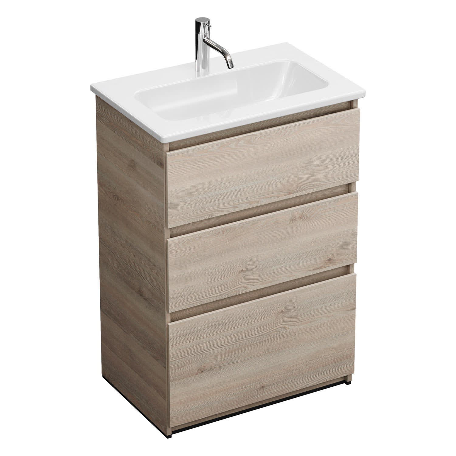 burgbad Lin20 Waschtischunterschrank mit Keramik-Waschtisch 63 cm, 3 Auszüge