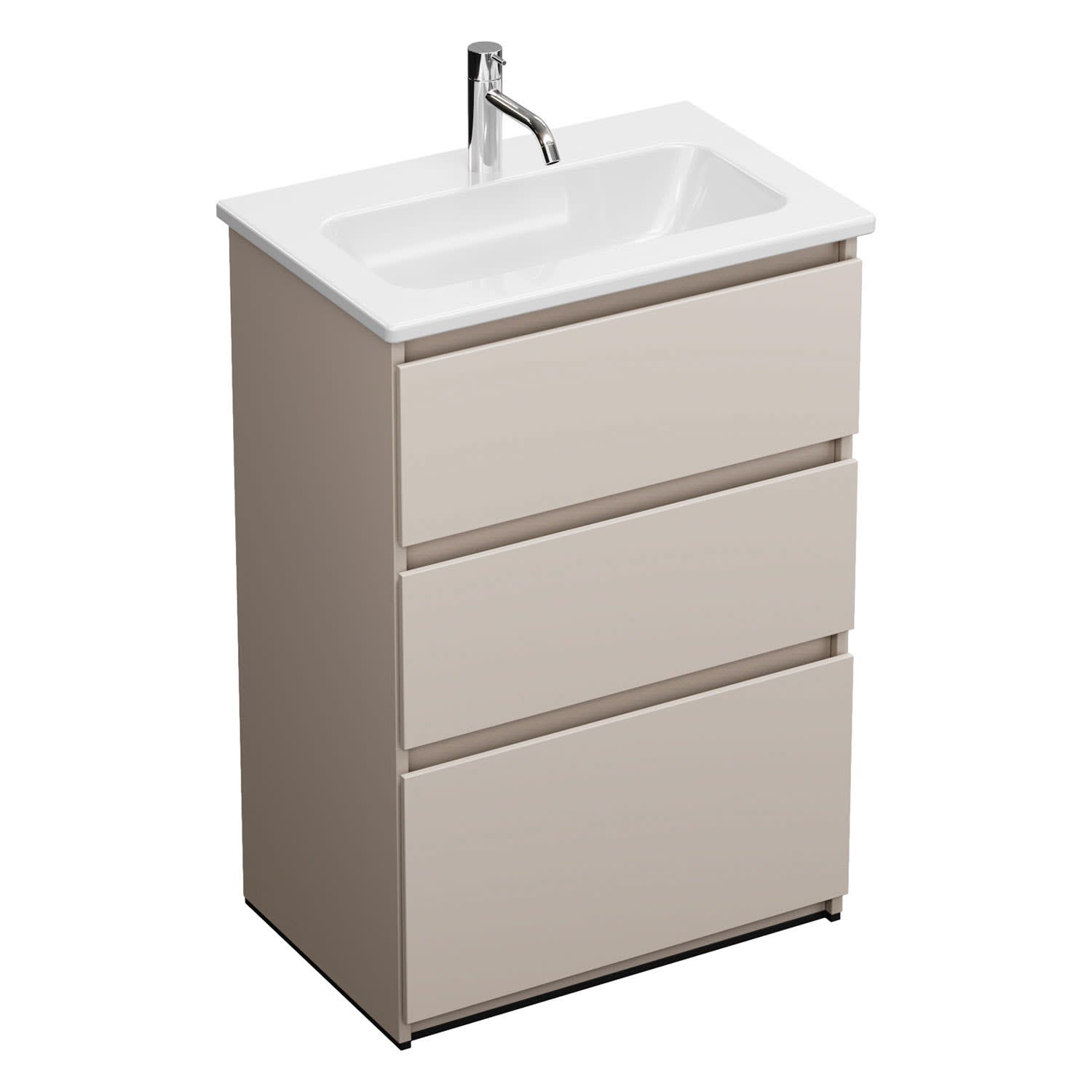 burgbad Lin20 Waschtischunterschrank mit Keramik-Waschtisch 63 cm, 3 Auszüge
