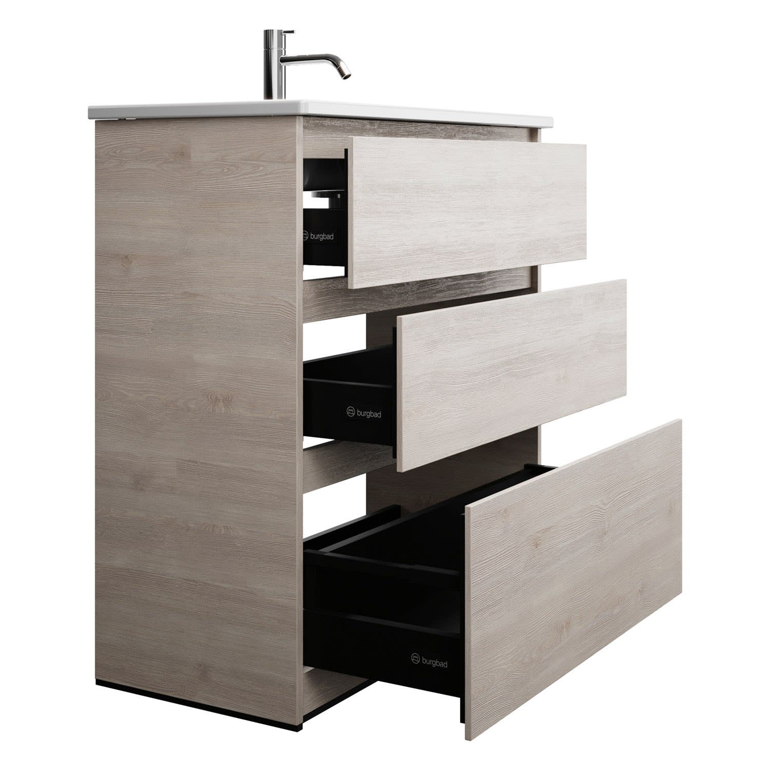 burgbad Lin20 Waschtischunterschrank mit Keramik-Waschtisch 83 cm, 3 Auszüge