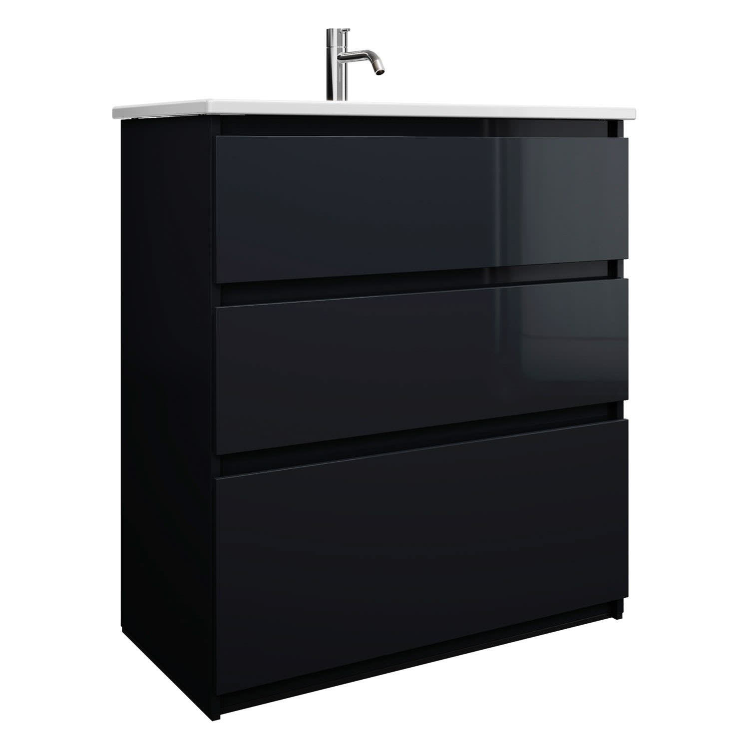 burgbad Lin20 Waschtischunterschrank mit Keramik-Waschtisch 83 cm, 3 Auszüge