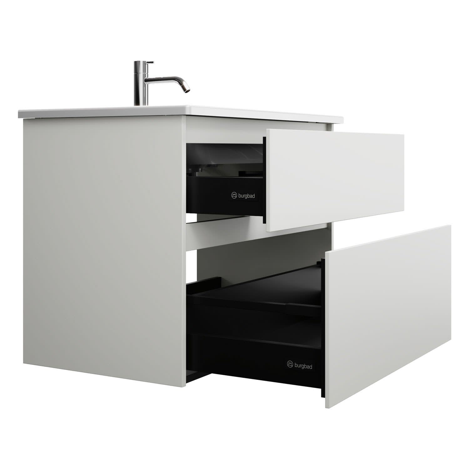 burgbad Lin20 Waschtischunterschrank mit Keramik-Waschtisch 83 cm, 2 Auszüge