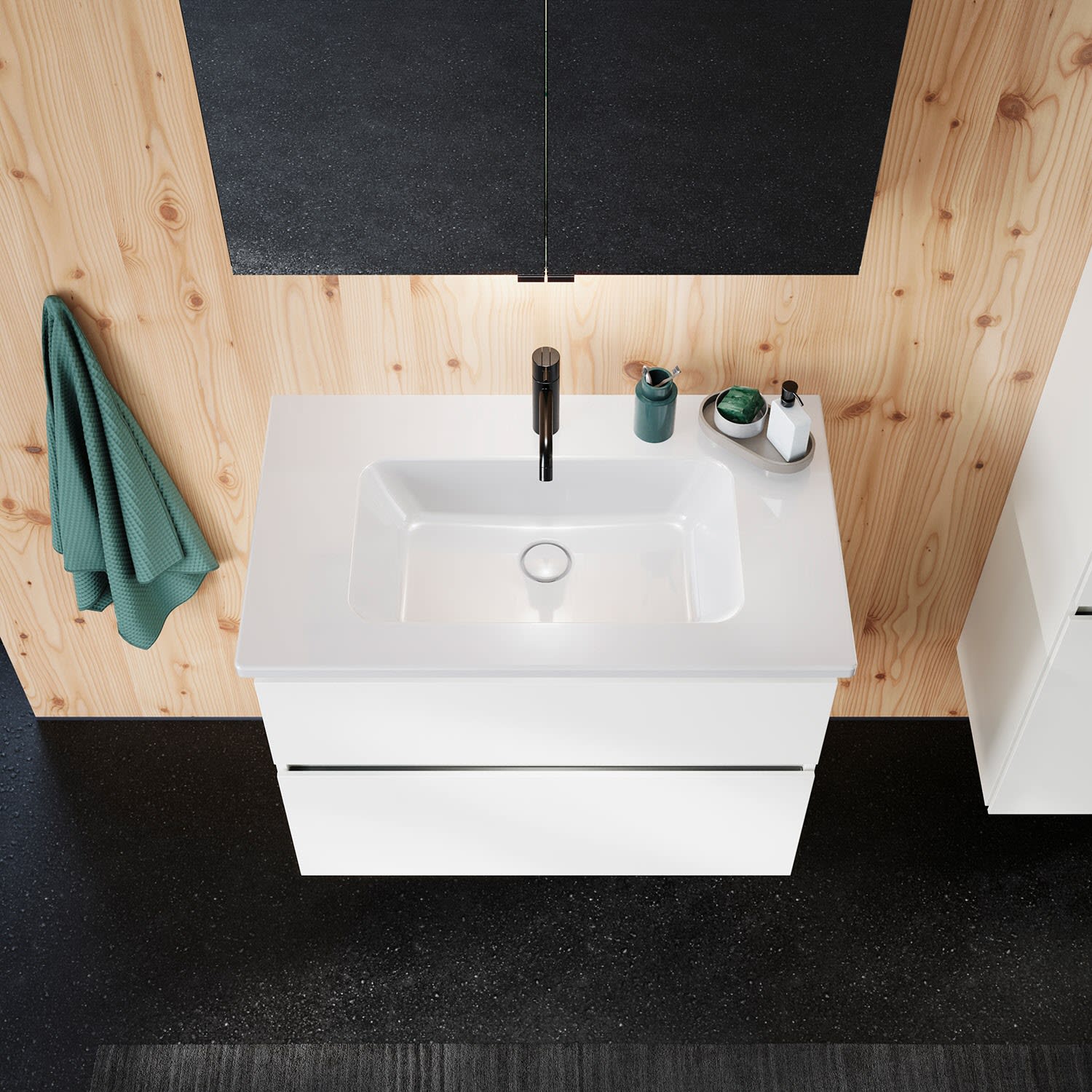 burgbad Lin20 Waschtischunterschrank mit Keramik-Waschtisch 83 cm, 2 Auszüge