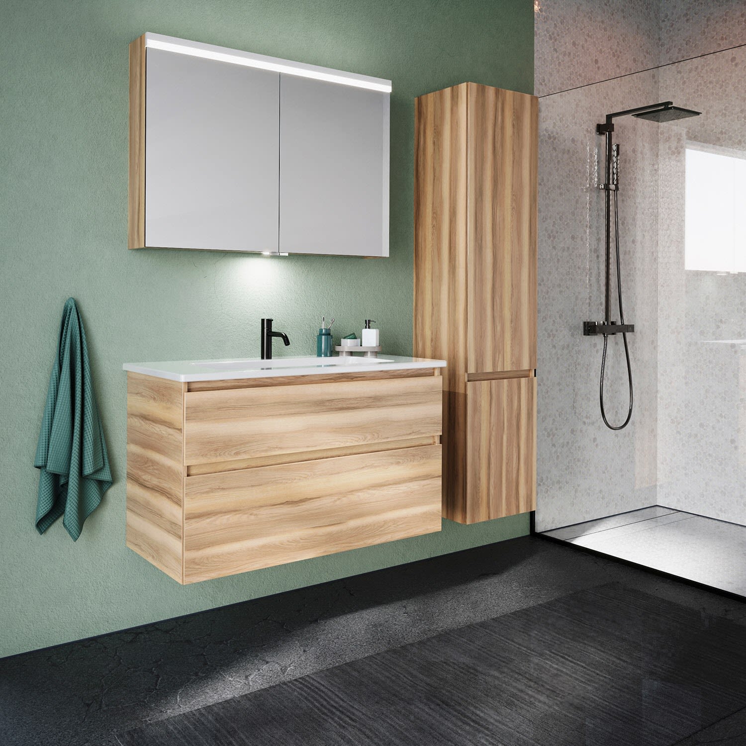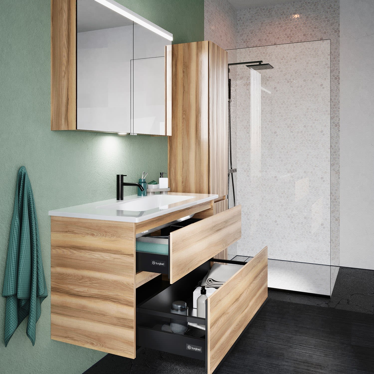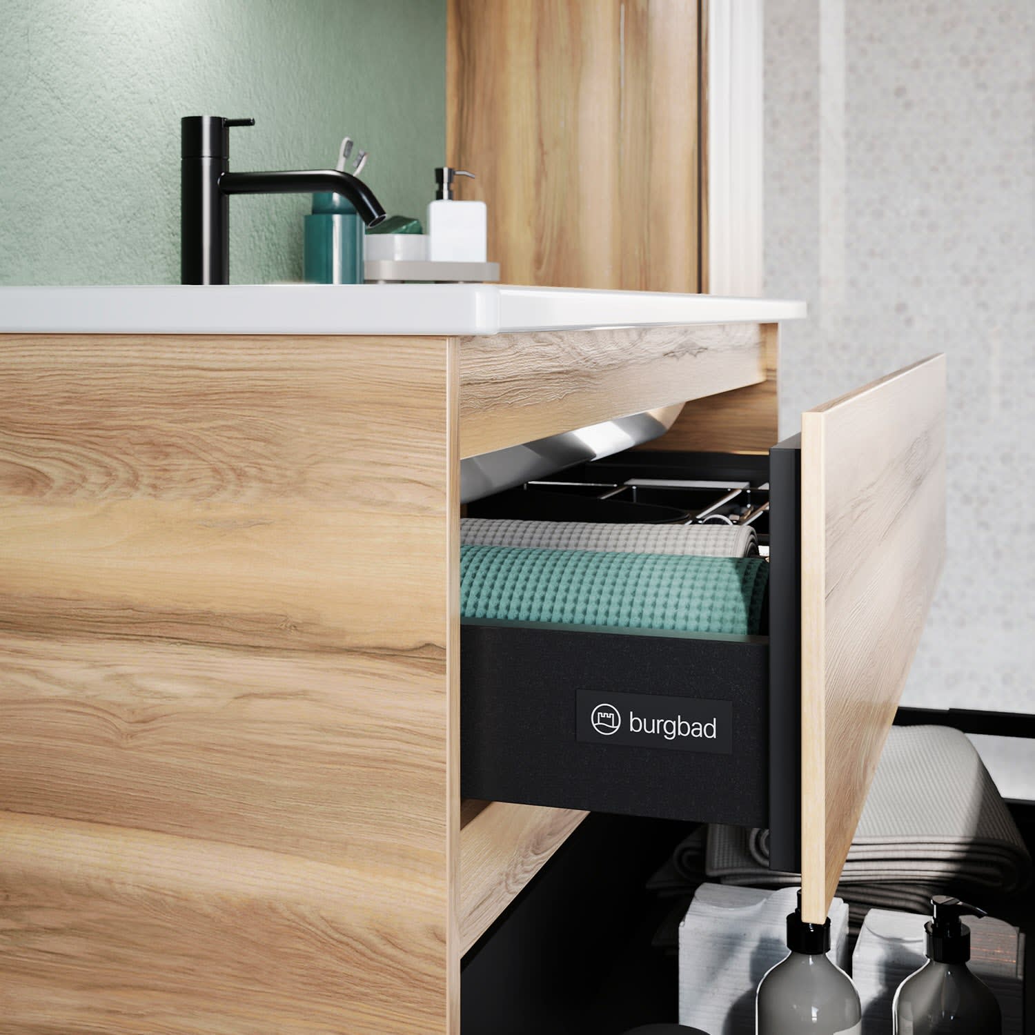 burgbad Lin20 Waschtischunterschrank mit Keramik-Waschtisch 103 cm, 2 Auszüge