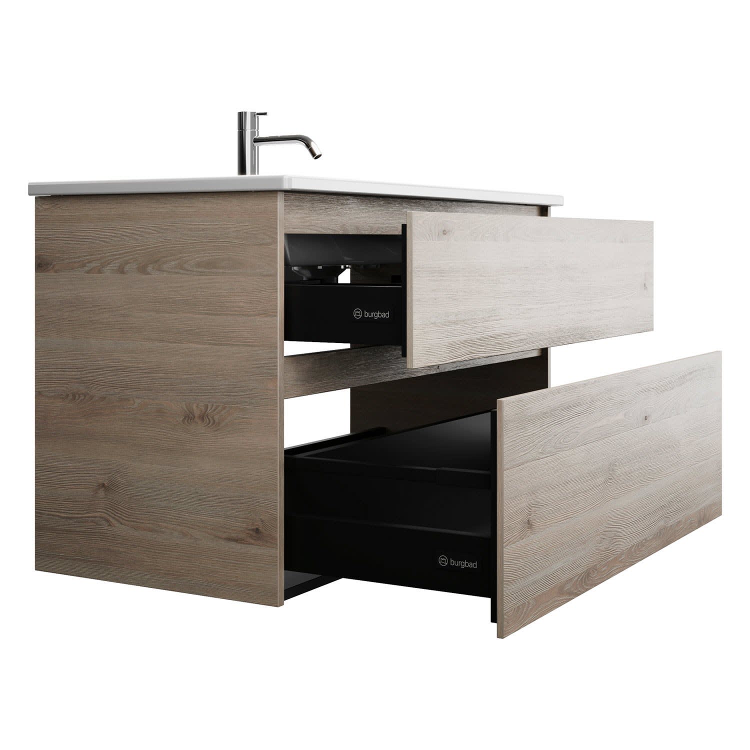 burgbad Lin20 Waschtischunterschrank mit Keramik-Waschtisch 103 cm, 2 Auszüge