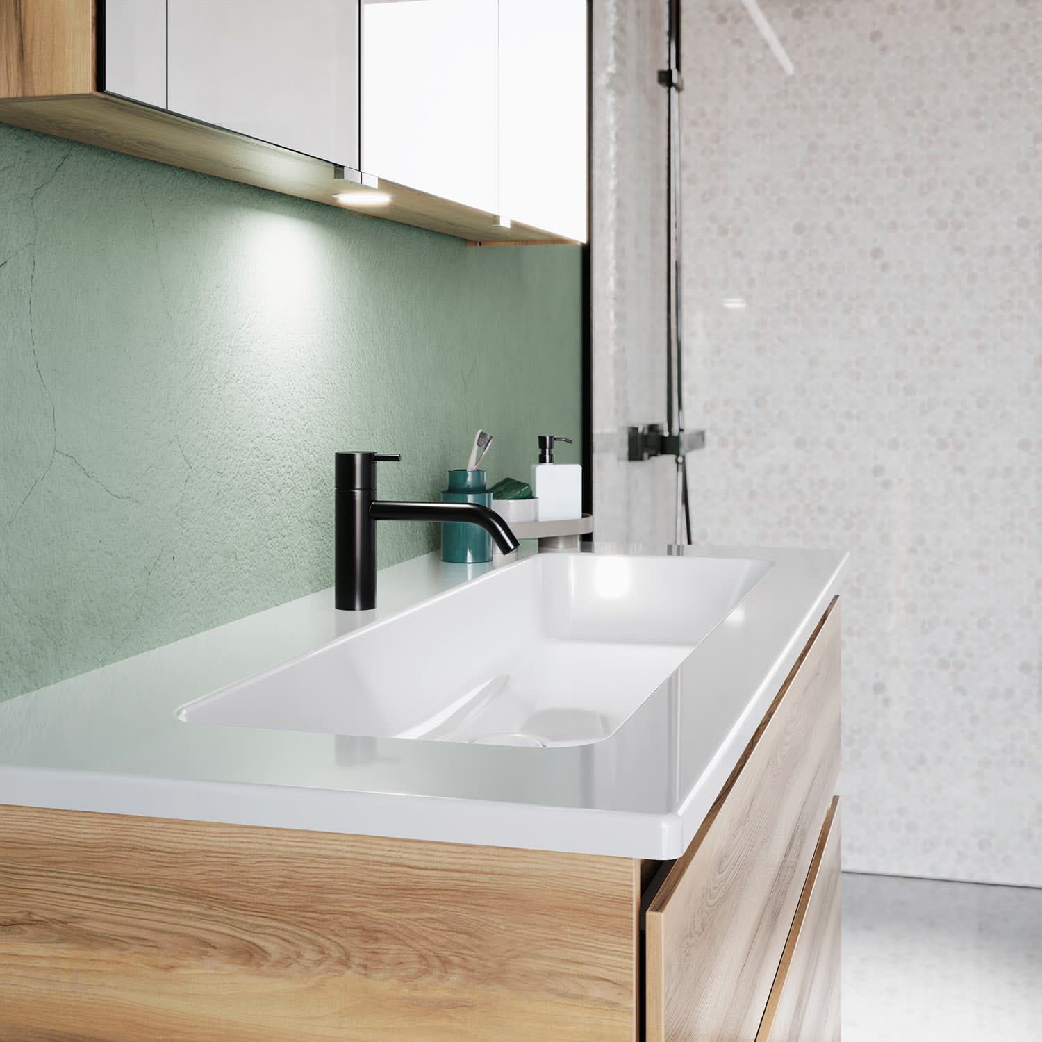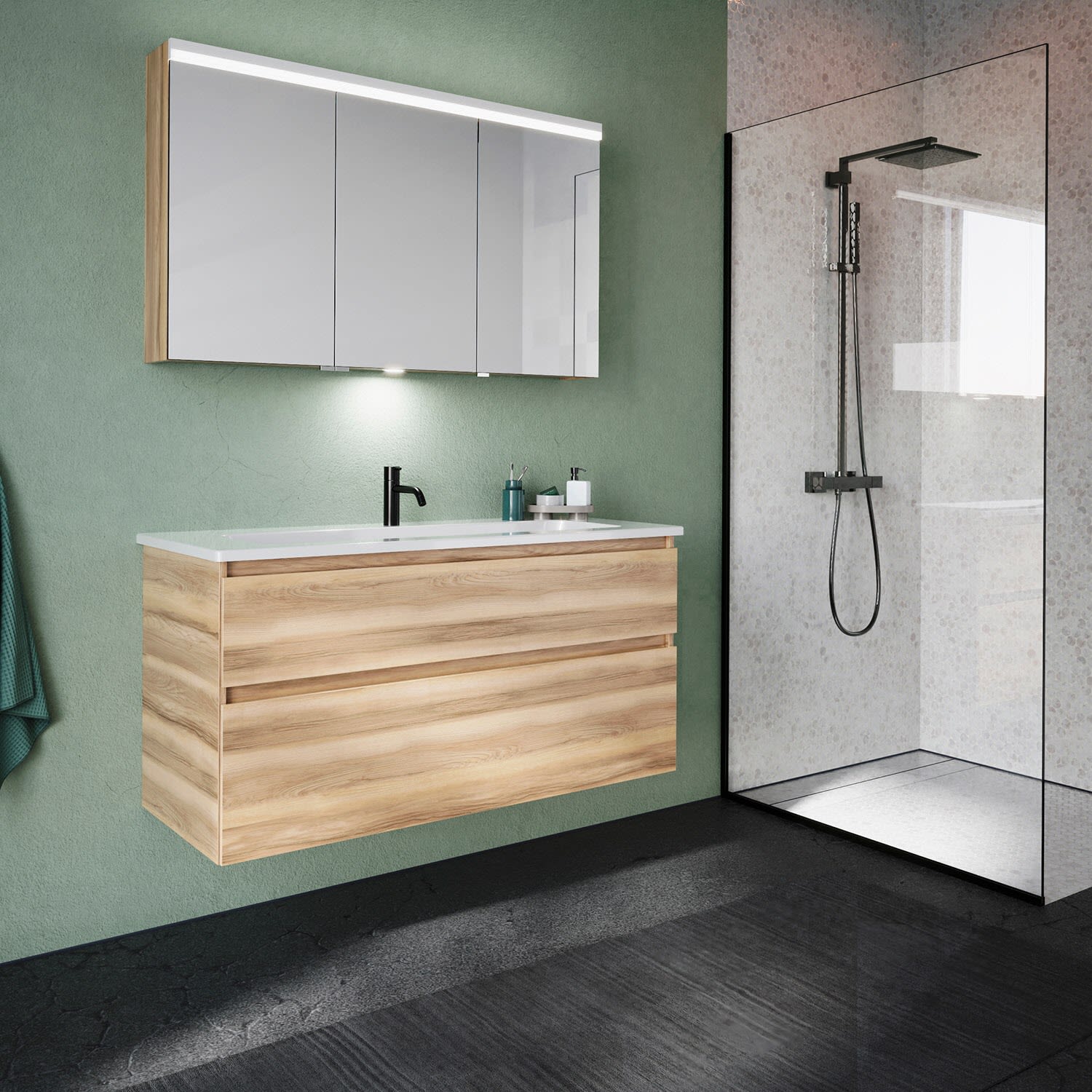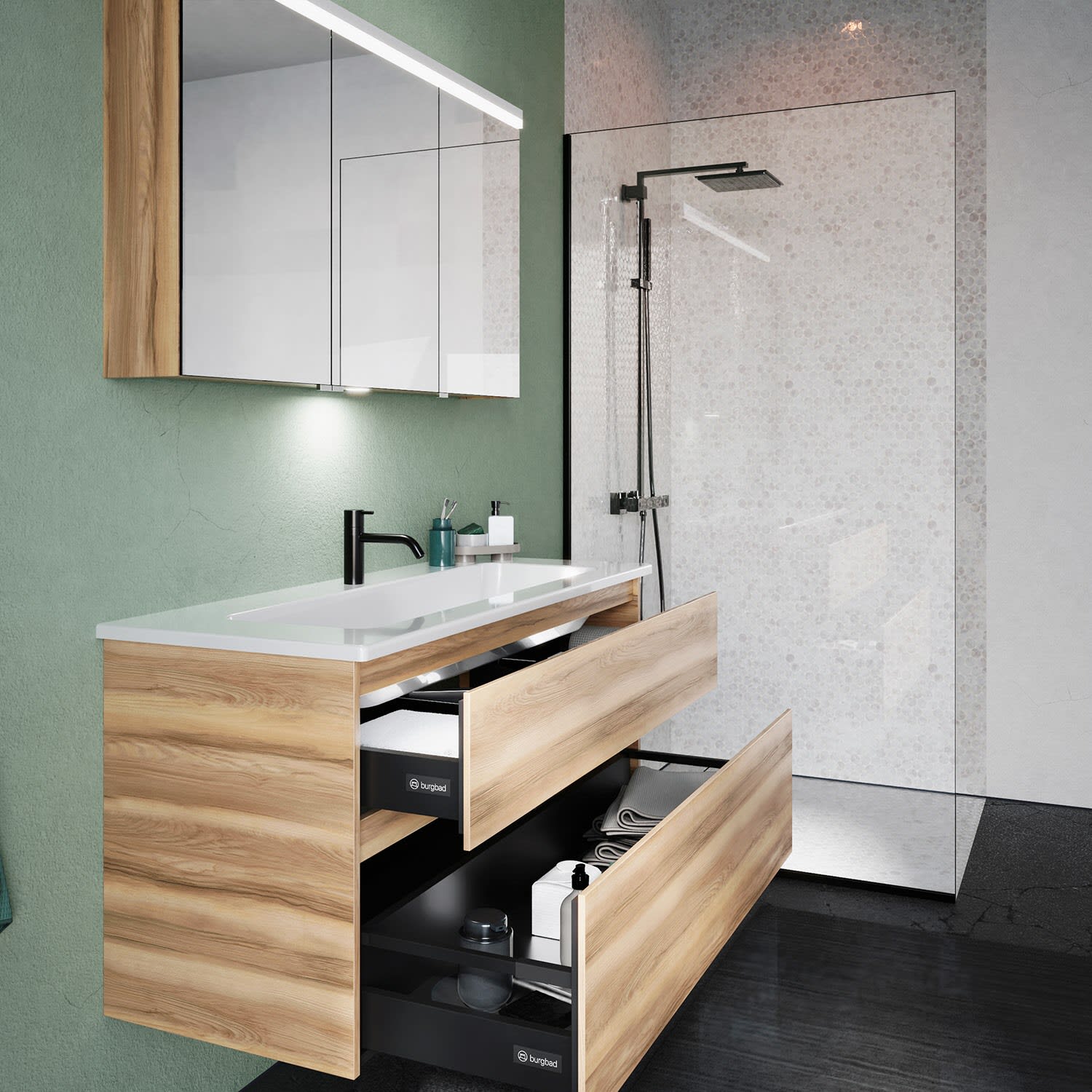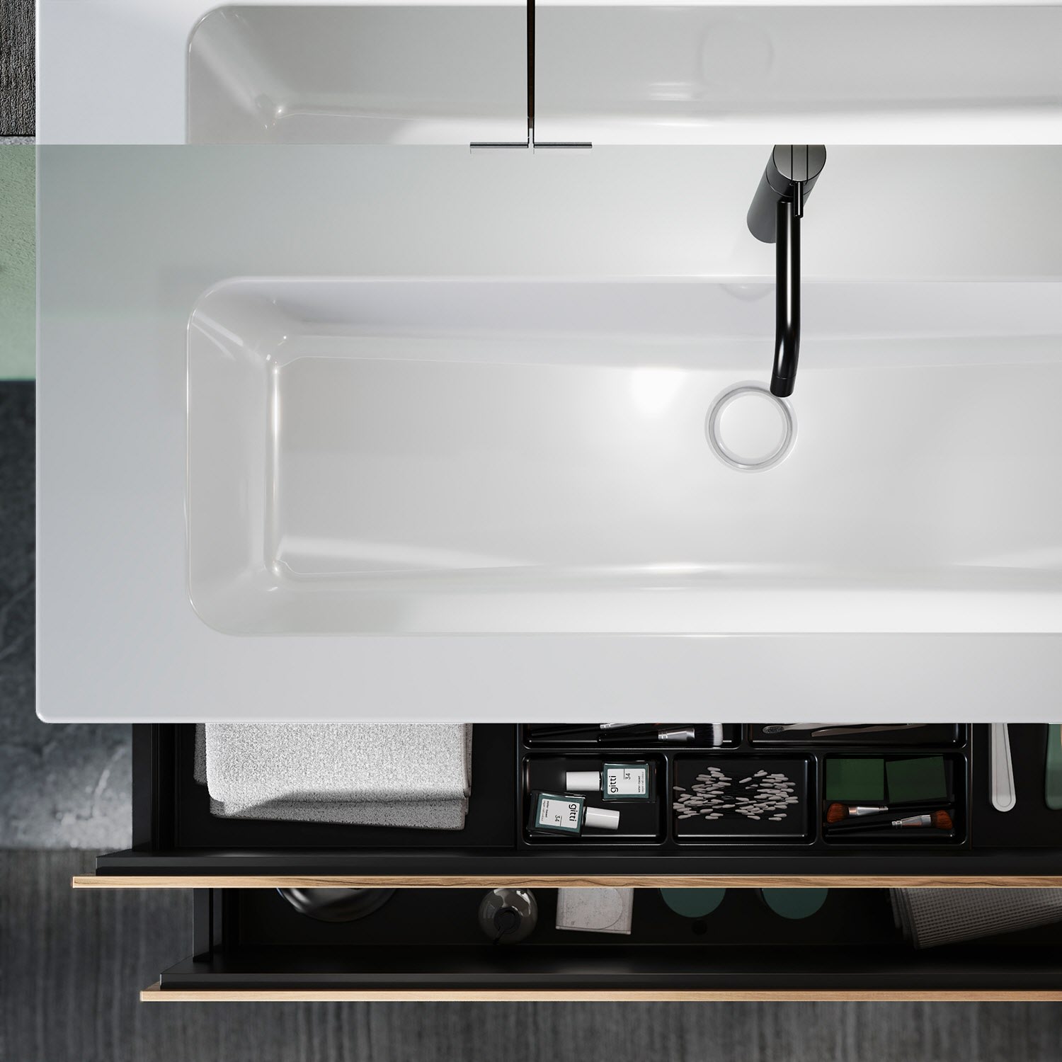 burgbad Lin20 Waschtischunterschrank mit Keramik-Waschtisch 123 cm, 2 Auszüge