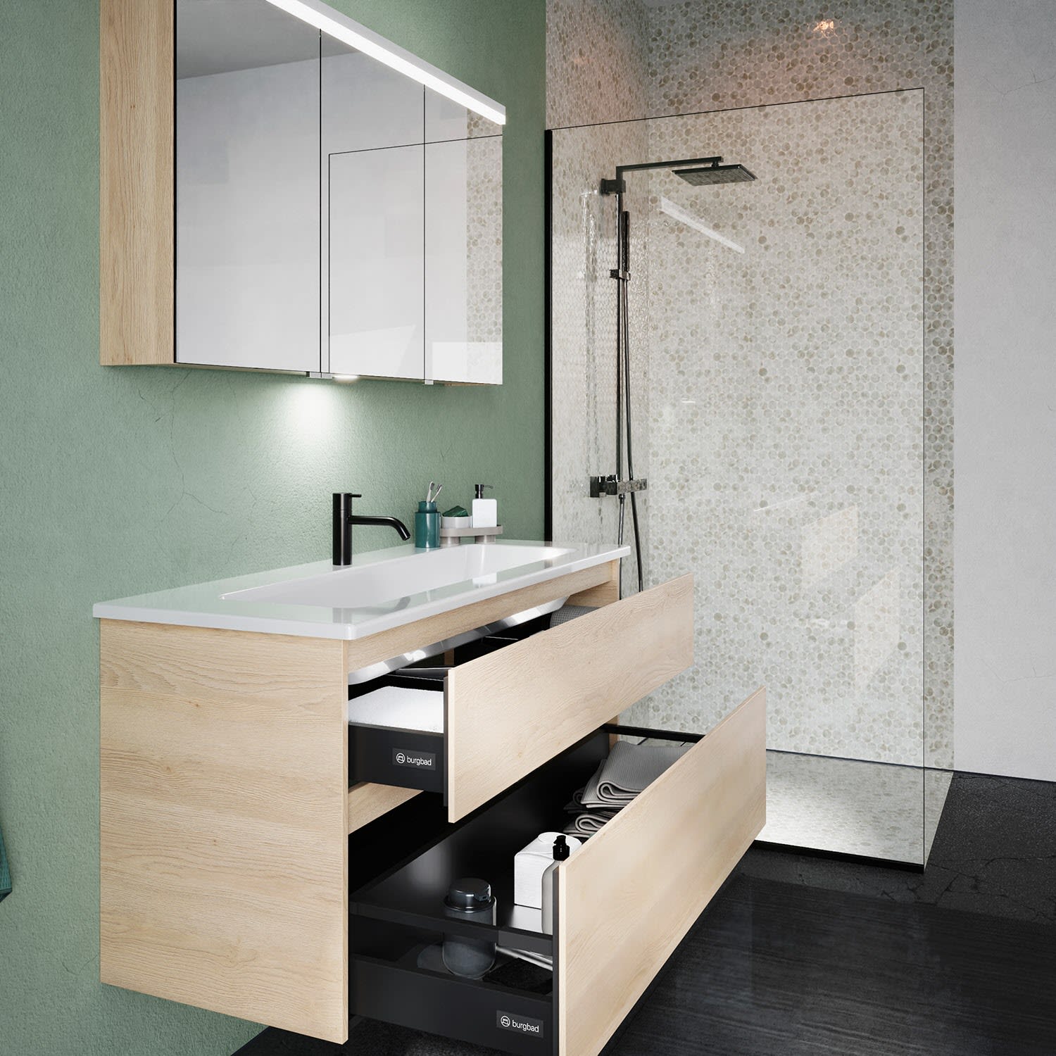 burgbad Lin20 Waschtischunterschrank mit Keramik-Waschtisch 123 cm, 2 Auszüge